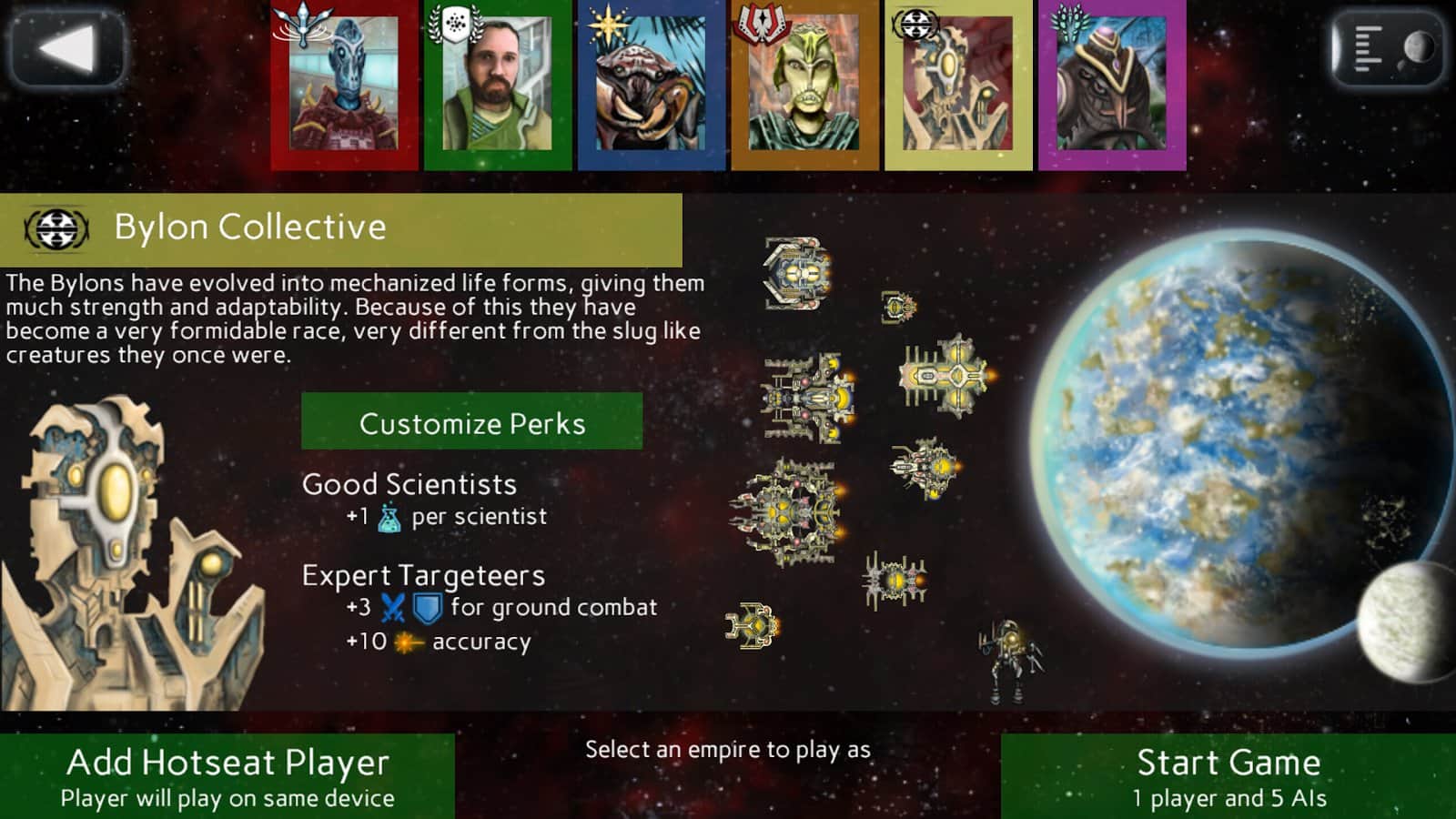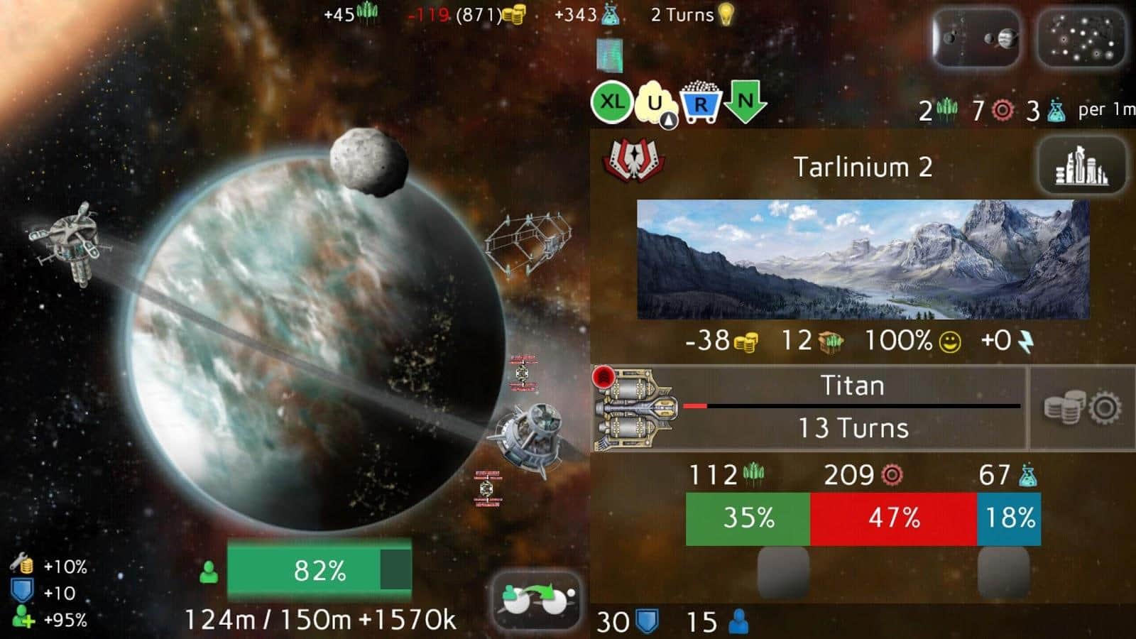 Uciana - la escala de estrategia espacial fue desarrollada especialmente para dispositivos móviles, donde debes intentar crear tu propio imperio espacial. La mecánica del juego combina elementos de estrategia en tiempo real; tu tarea es explorar el mundo, recolectar recursos, construir edificios, entrenar unidades y más, pero las peleas y batallas se realizan en un estilo por turnos. Esta combinación de mecánicas te permitirá controlar la jugabilidad y estratégizar por tu cuenta.