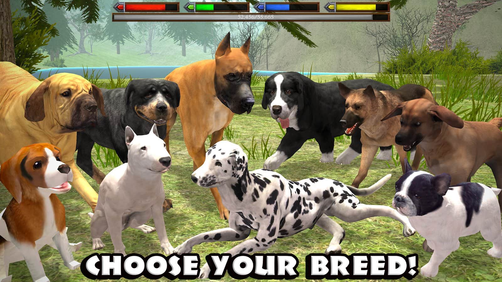 el Simulador de Perros Definitivo - siéntete en la piel de un perro, sin embargo, ¡no es un perro ordinario sino un verdadero depredador! Tu trabajo es mejorar a tu mascota, matando y comiendo otras especies, o encontrando y desenterrando huesos. Además, puedes realizar varias tareas y obtener ciertos bonos. Si estás cansado de la raza de tu perro, cámbiala por otra y comienza a mejorar de nuevo. Un enorme mundo al aire libre te dará muchas oportunidades para comenzar nuestra propia manada.
