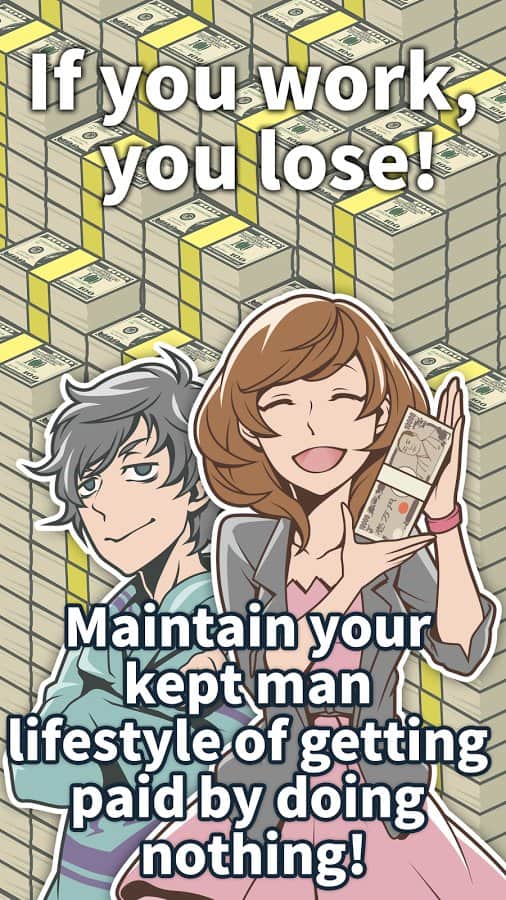 La Vida de Hombre Mantenido Definitiva – juego para Android con jugabilidad adictiva donde ayudarás a una joven a cumplir sus deseos. Este juego llegó a nosotros desde Japón, donde los desarrolladores de juegos saben mucho sobre buenos juegos de este género. Haz clic en la pantalla de tu teléfono o tableta y ayuda a una chica que trabaja constantemente para satisfacer sus necesidades diarias de comida, ropa y descanso. Cuanto más hagas clic en la pantalla, más rápido aumentará su capital, permitiendo que la chica viva la vida que desea. Juega en segundo plano y acumula mucho capital; al cerrar, el dinero aumentará durante nueve horas.