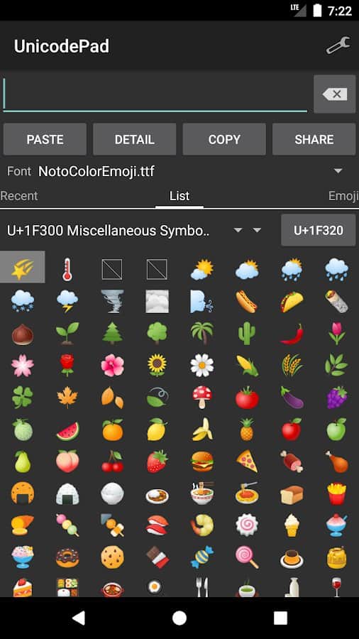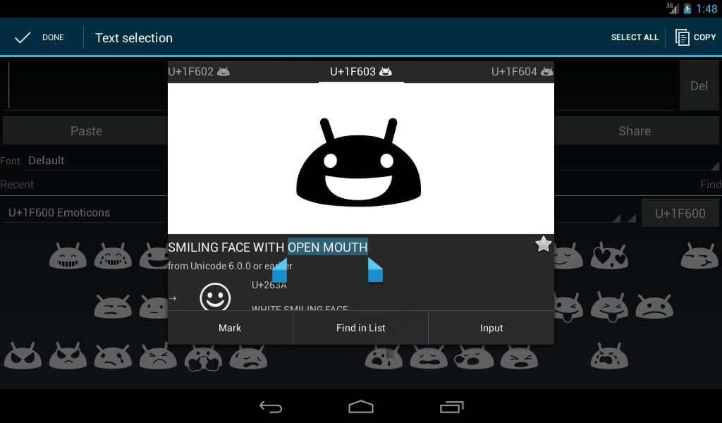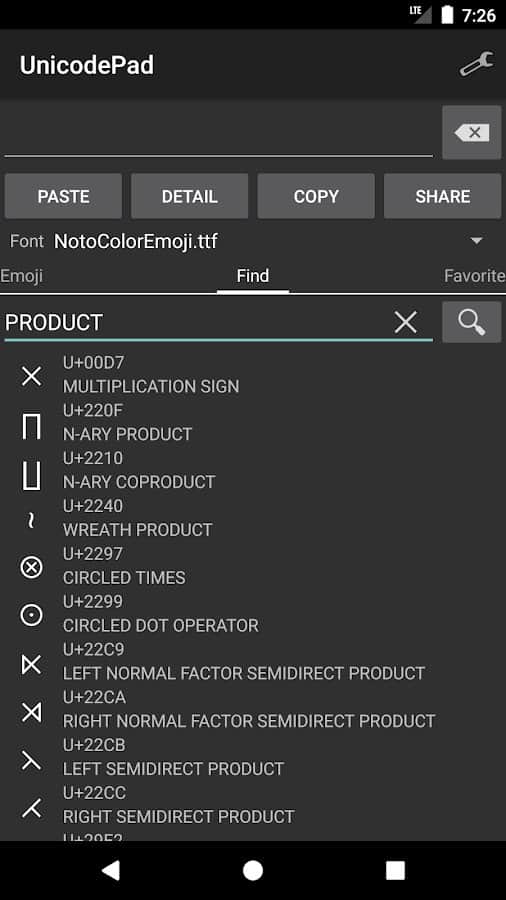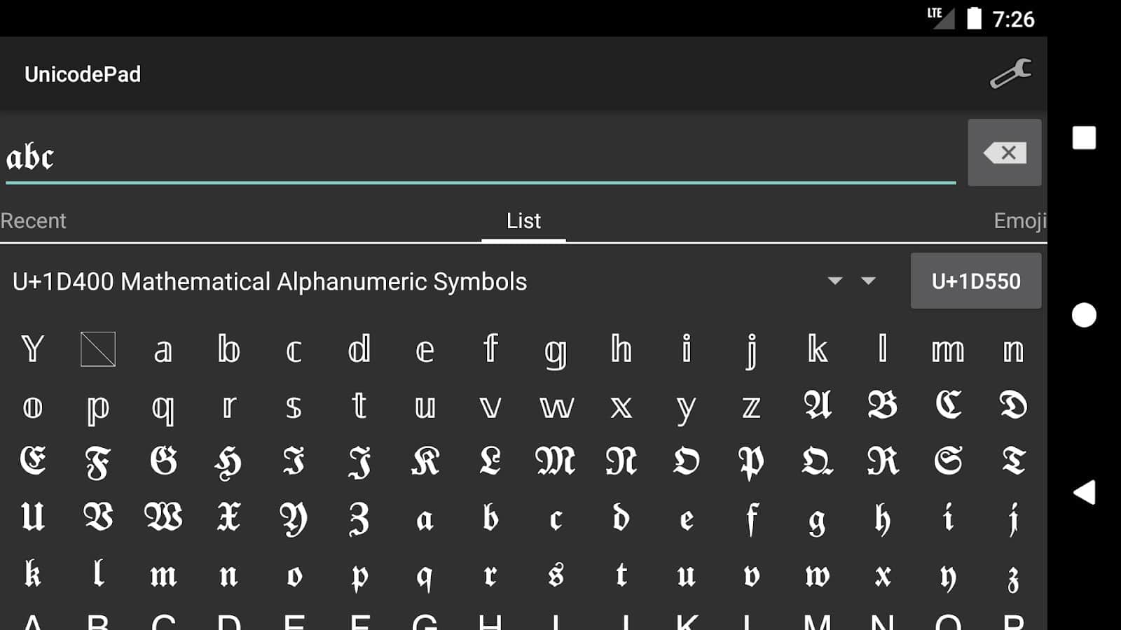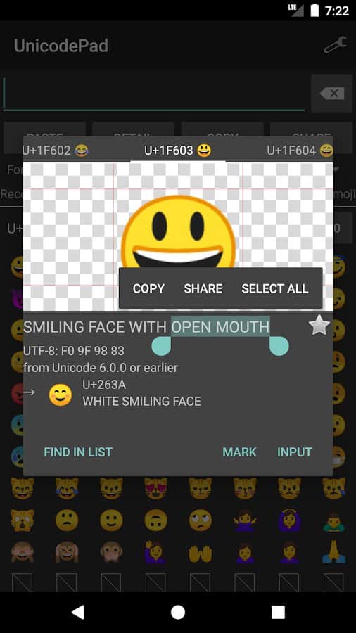 Unicode Pad - Ahora una persona pasa mucho tiempo en correspondencia con personas interesantes, por lo que es extremadamente importante tener un gran stock de emoticonos hermosos y símbolos inusuales para diversificar la comunicación. Transmite todas tus emociones y experiencias con la ayuda de emoticonos: elige tus favoritos, envíalos a la página de favoritos o márcalos con un texto determinado, y luego, cuando lo necesites, localízalos fácilmente. Además, la aplicación tiene una función para ver información detallada sobre el carácter al hacer doble clic.