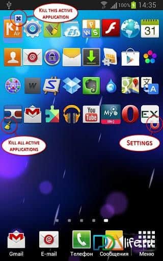 un widget permite cerrar la aplicación activa como el Killer de tareas de la aplicación s