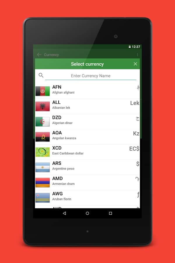 Agregar a "favoritos" proporciona acceso rápido a elementos de uso frecuente. Hay alrededor de 160 monedas del mundo para su conversión rápida y fácil.