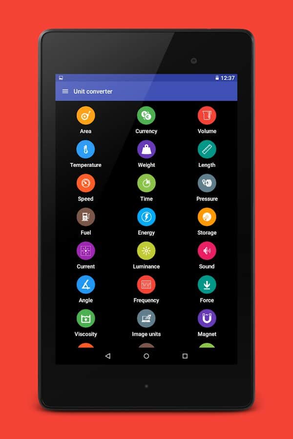 La aplicación "Convertidor" será útil para aquellos que a menudo realizan diversas mediciones y transforman valores como área, longitud, peso, moneda, presión, temperatura, velocidad, tiempo, volumen, sonido, viscosidad, frecuencia, energía, etc. Es un programa completamente gratuito que tiene un diseño simple y colorido con la capacidad de cambiar el tema y el fondo de pantalla, lo que promueve un fácil control de las funciones.