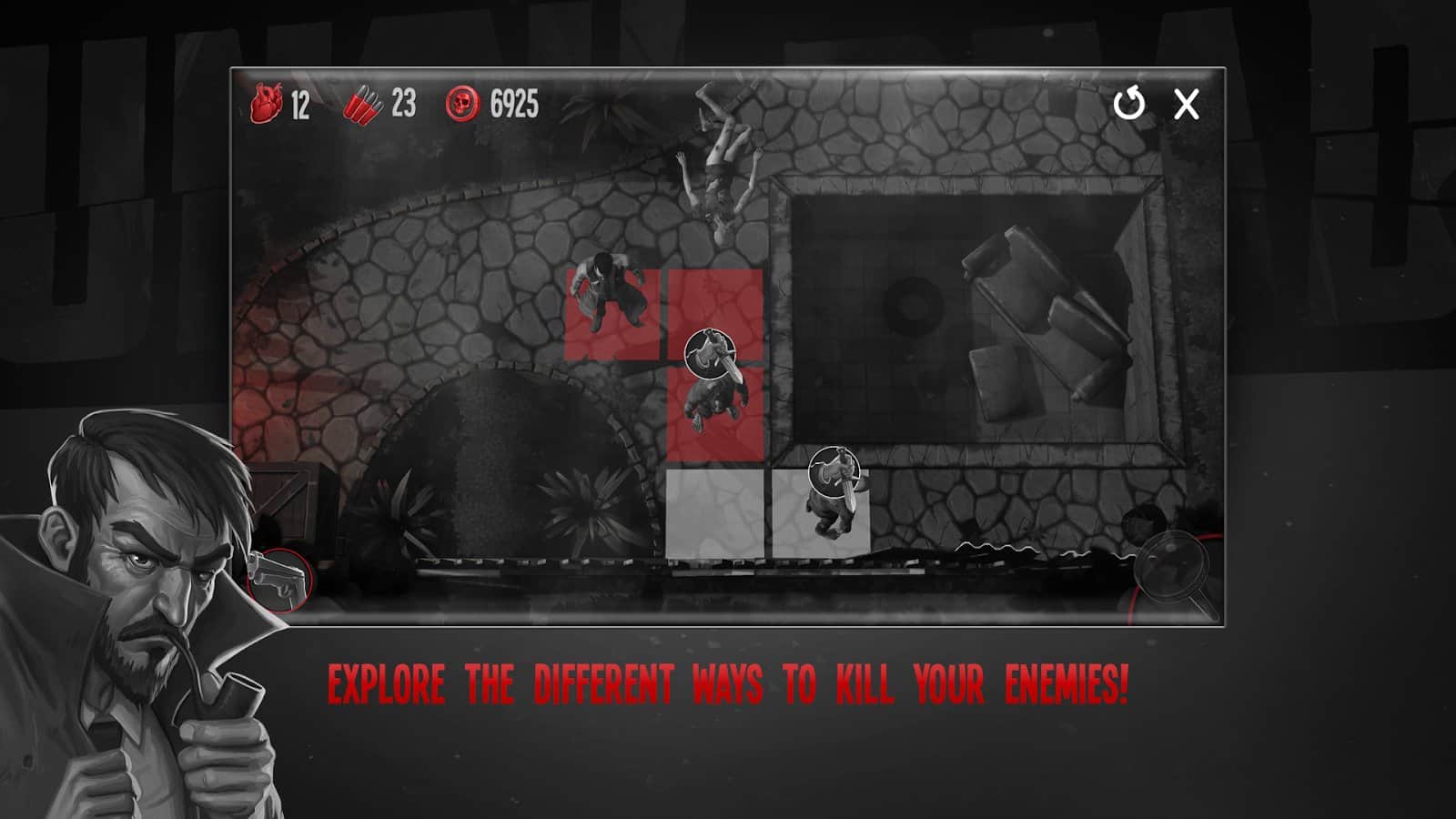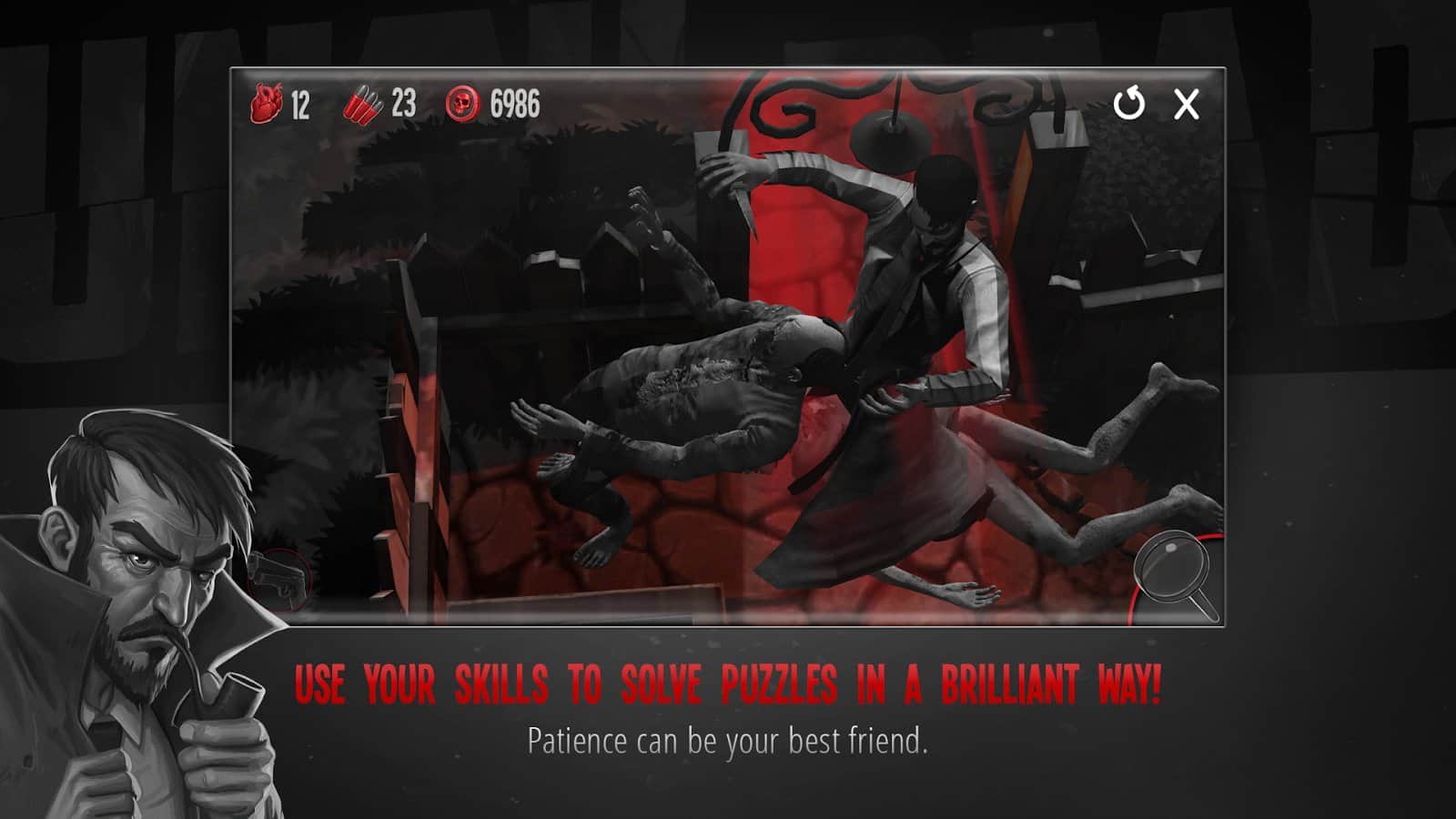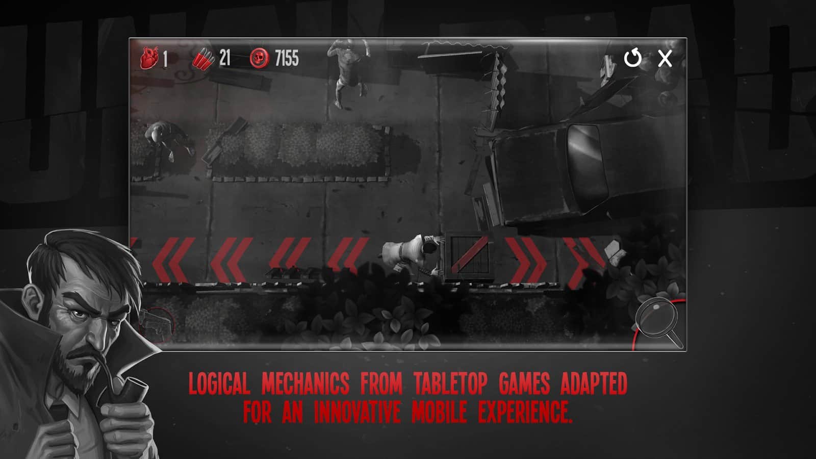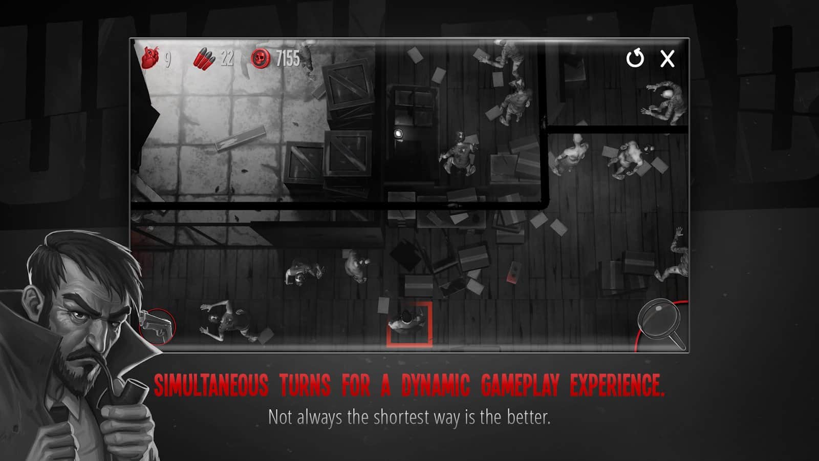 Hasta Muerto - Piensa para Sobrevivir – un juego por turnos, donde navegas por un mundo peligroso lleno de zombis. En este juego tomarás el control de un valiente detective, John Moore, y lo ayudarás a sobrevivir en un mundo peligroso. Una vez que las personas comenzaron a convertirse en zombis y nuestro héroe decidió revelar este secreto. Reúne las pistas, resuelve acertijos desafiantes, recolecta llaves y lucha contra los zombis. Piensa cuidadosamente cada paso y explora el peligroso mundo que te rodea. Haz tu camino hacia el objetivo designado y usa tus habilidades para resolver acertijos y abrir nuevos caminos para el movimiento. Descubre todos los misterios del mundo peligroso y demuestra que eres el mejor detective.