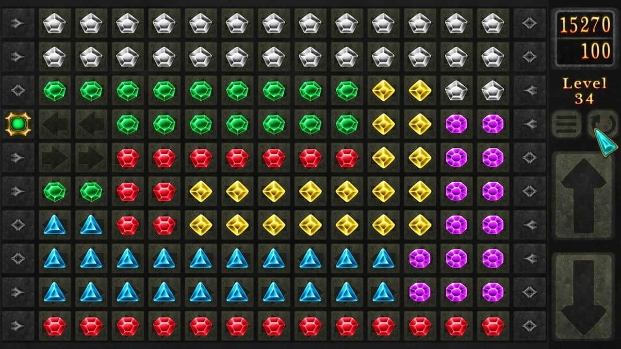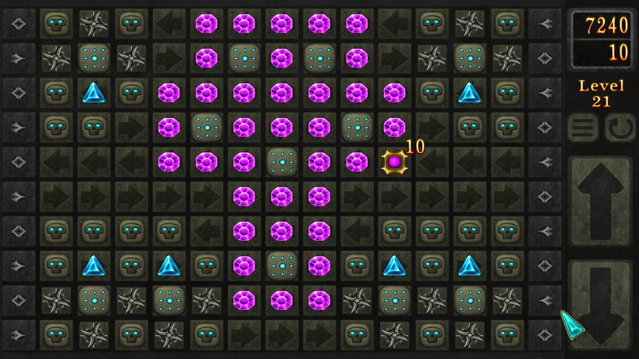 Arriba y Abajo: gemas – juego de rompecabezas adictivo para Android, colección de piedras preciosas. En este juego, tu tarea principal será navegar por los niveles y recolectar las gemas evitando trampas y obstáculos mientras usas solo dos botones "arriba" y "abajo". En este juego, se han recopilado más de 100 niveles, que son bastante diversos e incluyen tareas de lógica, inteligencia y paciencia. Con cada nuevo nivel, la complejidad del juego aumentará y tendrás que trabajar duro para superarlos todos.