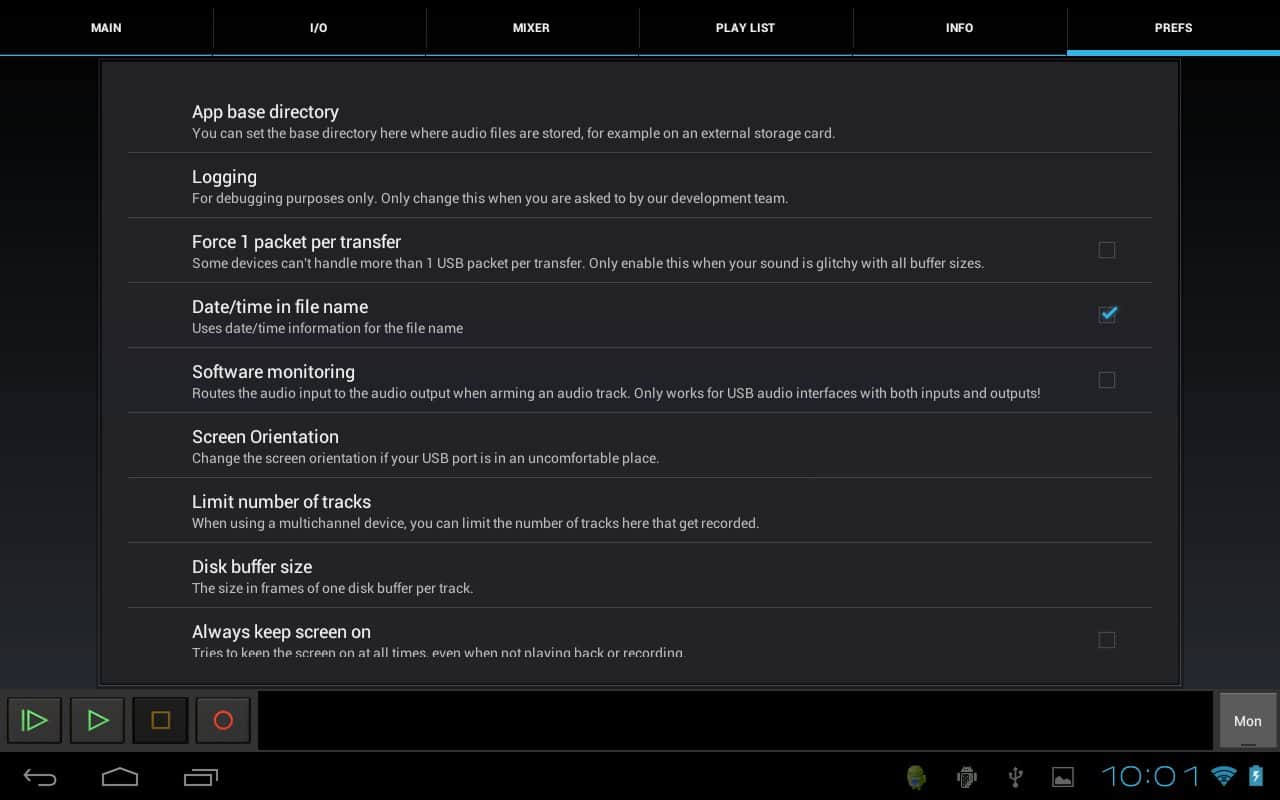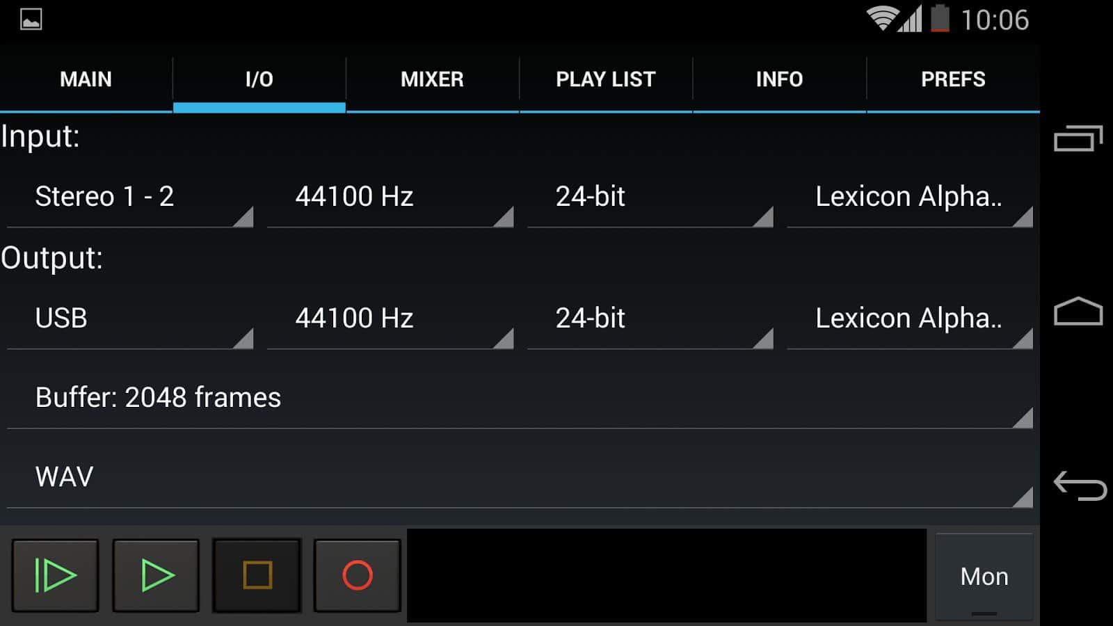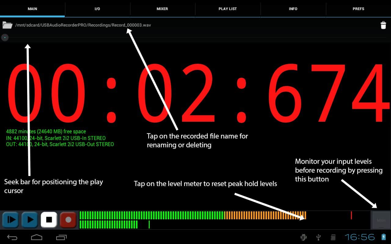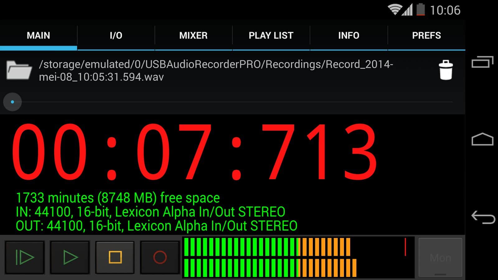 Grabador de Audio USB - Graba y reproduce audio en alta calidad desde una interfaz de audio USB. Para un uso correcto del programa, necesitas soporte de USB 2.0 y especificaciones de audio 1.0 o 2.0. Antes de usar el programa, asegúrate de que el cable esté conectado y todo esté configurado correctamente. La aplicación tiene una lista de reproducción simple, ecualizador y más. Aquí hay algunas características de la aplicación: