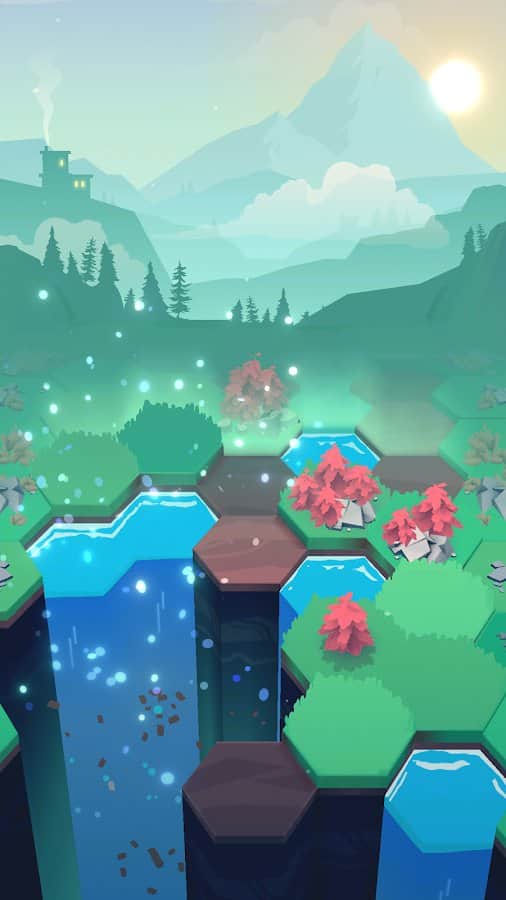 Valles Entre – un adictivo juego de rompecabezas para Android donde crearás tu mundo en un entorno próspero y cambiante. Sumérgete en el fascinante mundo del juego y descubre todos los misterios del valle aislado en el que te encuentras. Construye tu mundo próspero, que consistirá en sitios hexagonales y mejóralo sin perturbar el delicado equilibrio. Usa tu pulgar para deslizar hacia arriba y hacia abajo para cambiar el terreno con un solo dedo. Juega a este juego en cualquier momento libre y disfruta de un agradable pasatiempo y una atmósfera relajante. Completa tareas diarias que se crean para diferentes estaciones y condiciones meteorológicas.