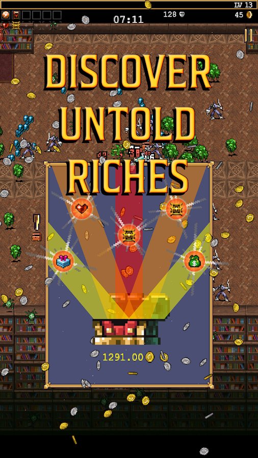 Vampire Survivors - Comienza una lucha real con la Muerte antes de que te engulla por la noche mientras intentas sobrevivir. Concéntrate en recolectar armas y otros equipos para defensa o ataques, ya que las joyas no tendrán valor si no sales vivo. Mejora el nivel de tus objetos, aumentando también la fuerza de la armadura y la suerte, estas son exactamente las cosas en las que vale la pena gastar mucho dinero. Muévete por el territorio disponible, abre cofres del tesoro, ¡lucha contra los monstruos más fuertes en un tiempo limitado!