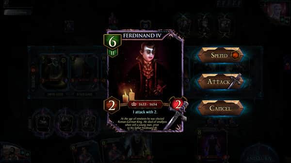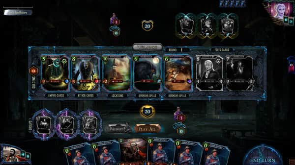 VEmpire: El Rey de la Oscuridad - este juego te sumergirá en la verdadera oscuridad de la Edad Media. Todas las cartas y la atmósfera están literalmente inmersas en la oscuridad y están dibujadas con bastante precisión. Se te dará la opción de varios personajes, cada uno con sus propios subordinados, por supuesto, todos ellos son diferentes. El problema que tienes es bastante simple, necesitas construir tu propio mazo y pensar en él en el campo de batalla, causando daño al oponente con guerreros o magia.