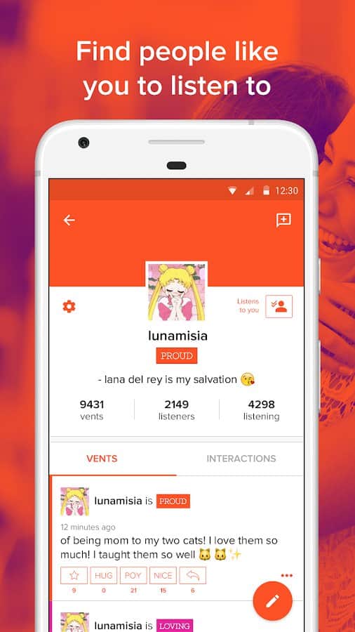 Vent - Expresa tus pensamientos libremente – cuenta al mundo sobre lo que te da vergüenza hablar en persona. Con esta aplicación obtendrás muchas emociones positivas, harás amigos y podrás comunicarte sobre absolutamente cualquier tema. Regístrate, crea un apodo o usa tu nombre real, encuentra amigos con intereses comunes y comunícate 24/7, desarrolla habilidades interpersonales y simplemente diviértete en el proceso. Piensa en positivo, la aplicación tiene un diseño delicado y una paleta de colores calmante.