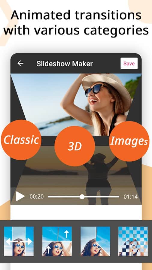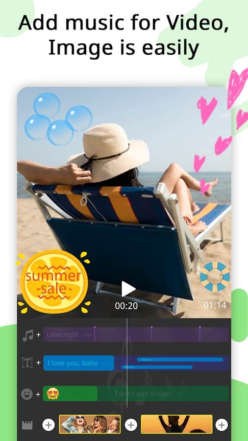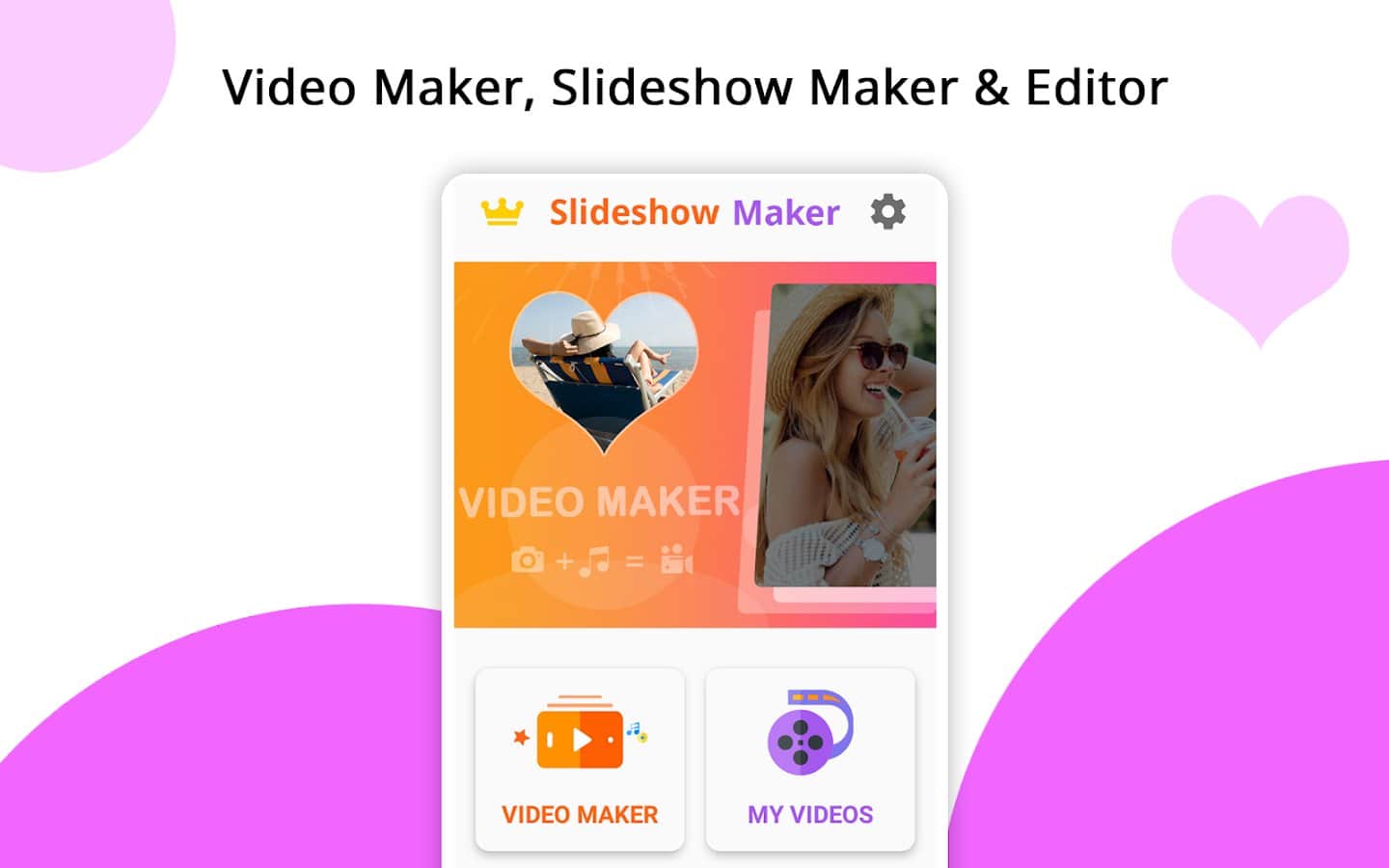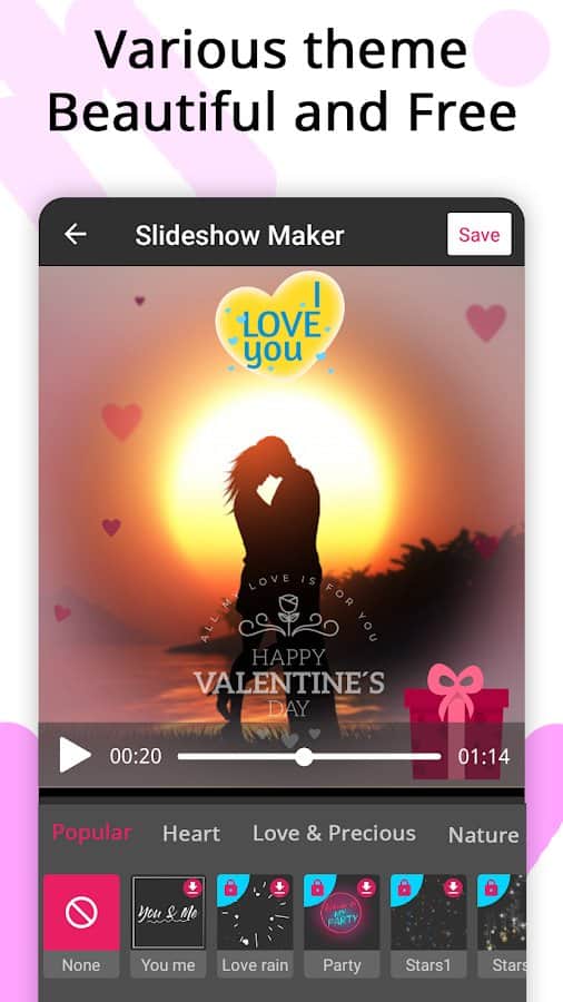 la aplicación Creador de Videos, Creador de Presentaciones de Video te ayuda a crear películas, collages de fotos o videos musicales de manera rápida y fácil, pero también a editarlos. Puedes crear presentaciones de video con hasta 100 piezas, recortar fotos y videos, fusionar varios clips en uno, agregar audio, etc. Crea historias únicas y publícalas en redes sociales populares, compártelas con familiares y amigos en mensajería. Una presentación de fotos también puede sorprender a tus amigos y convertirse en un elemento vívido de tus recuerdos de vida. Elige una variedad de temas (personas, amor, relaciones, amistad), agrega efectos de transición, cambia el tiempo y la velocidad de la presentación, color, estilo, tamaño, fuente, sombra y otros filtros, convierte audio y video, exporta en alta calidad.