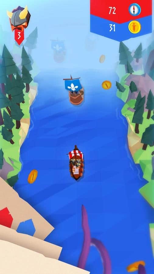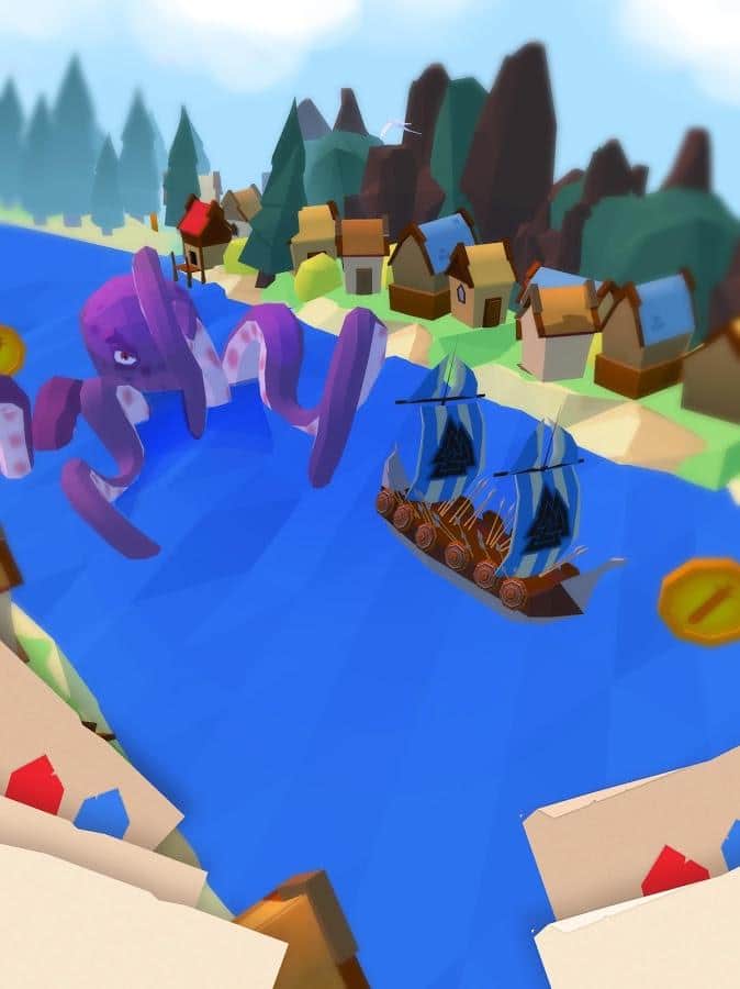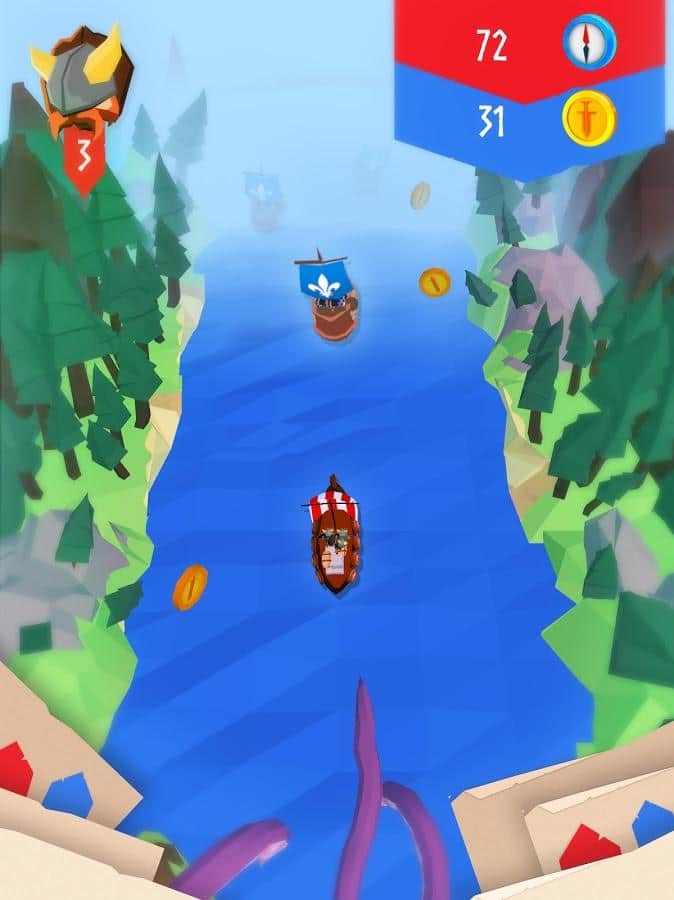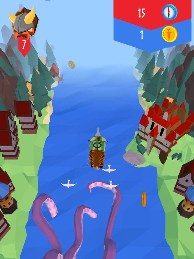 Viking Sail – un juego en Android donde ayudarás al valiente vikingo a viajar en una tierra implacable. Vuela tu barco hacia adelante y sopla en las velas tanto como sea posible, para atravesar rápidamente todos los obstáculos y escapar de un gigantesco pulpo que te persigue. Durante este fascinante viaje te encontrarás con muchos obstáculos en tu camino y para evitarlos necesitarás poner mucho esfuerzo y tratar de alcanzar la máxima velocidad. Sobrevive el mayor tiempo posible en este juego y recoge todos los bonos para tu barco. Ayuda a los vikingos a navegar de manera segura hacia su hogar.