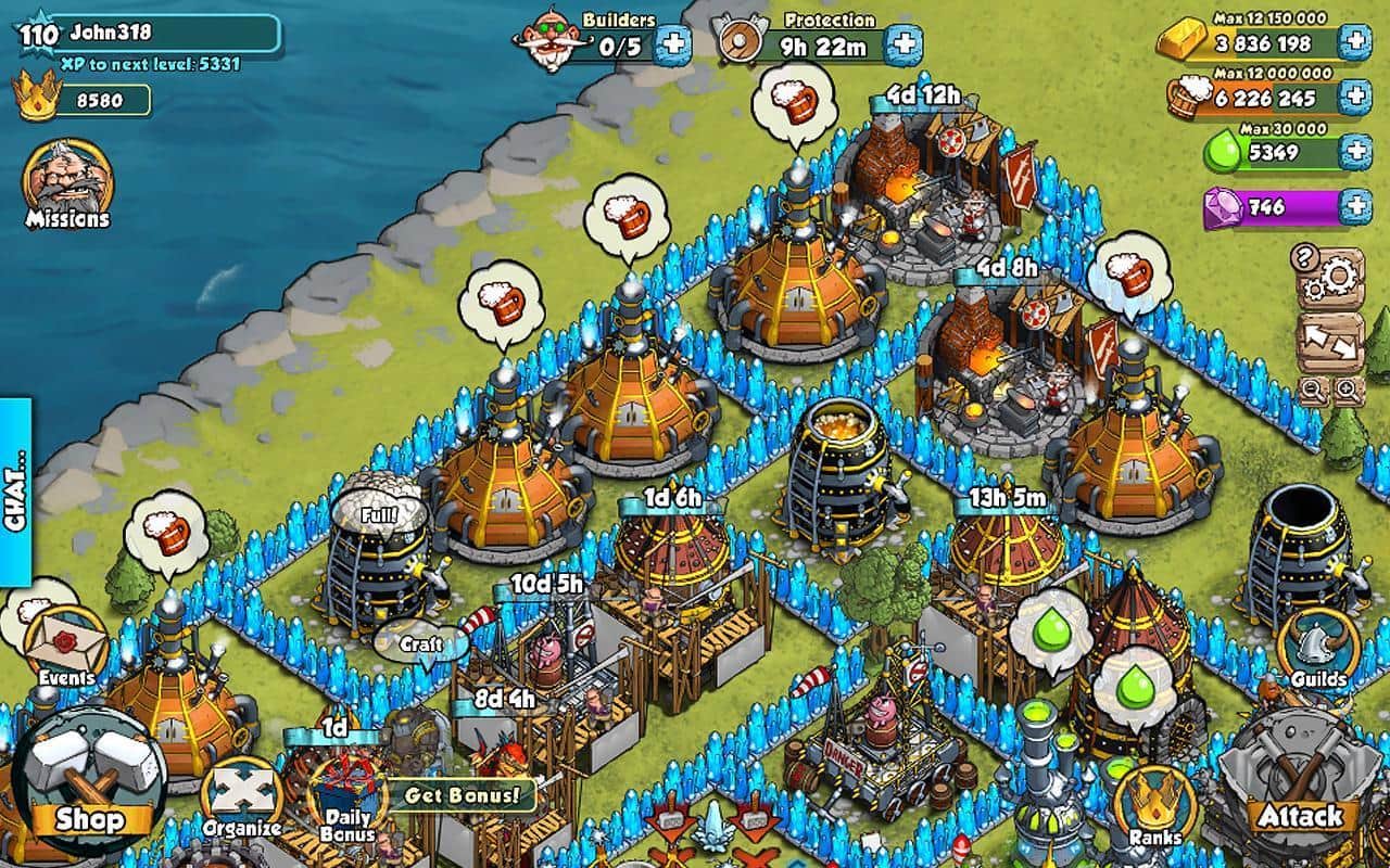Vikingos Fuera de Control - Este juego sigue siendo en 2013 uno de los diez mejores juegos en la red social Facebook. Los desarrolladores proponen viajar de regreso a la época vikinga, cuando había una guerra sangrienta y viajes lejanos. ¡Pero incluso en esos días había zombis! Tu tarea será ayudar a nuestros vikingos a fortalecer su asentamiento, construir un ejército y dar una gran batalla contra los zombis sedientos de sangre!
