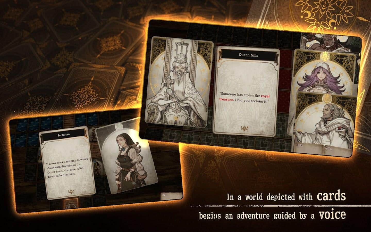 Eventos emocionantes e impredecibles te esperan en el mundo de Voice of Cards. Cada decisión que tomes, cada movimiento en el mapa y cada lanzamiento de los dados importa y puede afectar el desarrollo de la trama. Sumérgete en las profundidades de un mundo misterioso donde cada mapa tiene su propia historia única. Ciudades misteriosas, peligrosas mazmorras y hermosos paisajes te esperan, cobrando vida ante tus ojos gracias a los magníficos gráficos de Kimihiko Fujisaka. Las batallas serán una verdadera prueba de tu astucia táctica y suerte. Cada lanzamiento de los dados puede cambiar el resultado de la batalla, añadiendo un elemento de emoción e imprevisibilidad. Una magnífica banda sonora de Keiichi Okabe te acompañará a lo largo del juego, creando una atmósfera especial y elevando el ánimo en los momentos más intensos.
