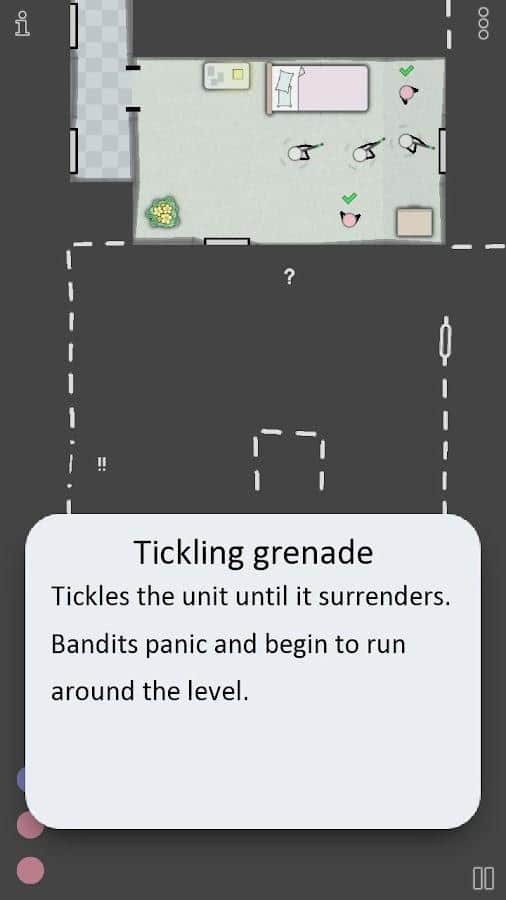 Juego táctico Vodobanka para Android en el que controlas un equipo SWAT. Necesitarás asaltar el edificio y neutralizar y arrestar a los criminales para pasar de nivel. Planifica las rutas de movimiento de los combatientes y recoge el equipo y las armas necesarias. Tu decisión dependerá del éxito de toda la operación y de la salud de tus soldados. Vodobanka es un juego muy fácil de entender, su desarrollo tomará varios minutos.