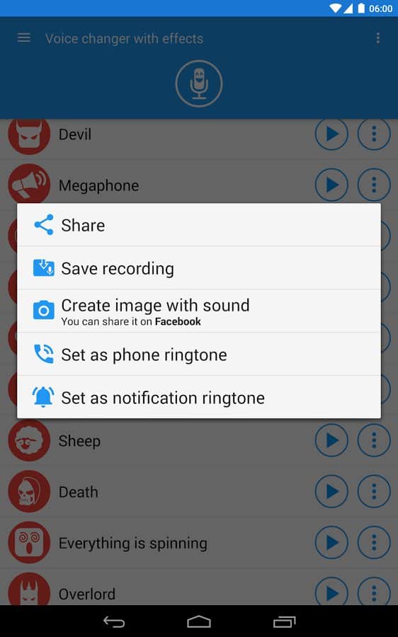Cambiador de voz con efectos / cambiador de voz - Si quieres hacerle una broma a tus amigos o simplemente reírte en una reunión, entonces esta aplicación te ayudará con eso. Graba tu propia voz o la de tus amigos, aplica diferentes efectos y ¡mira lo que sucedió! Buen humor está garantizado =).