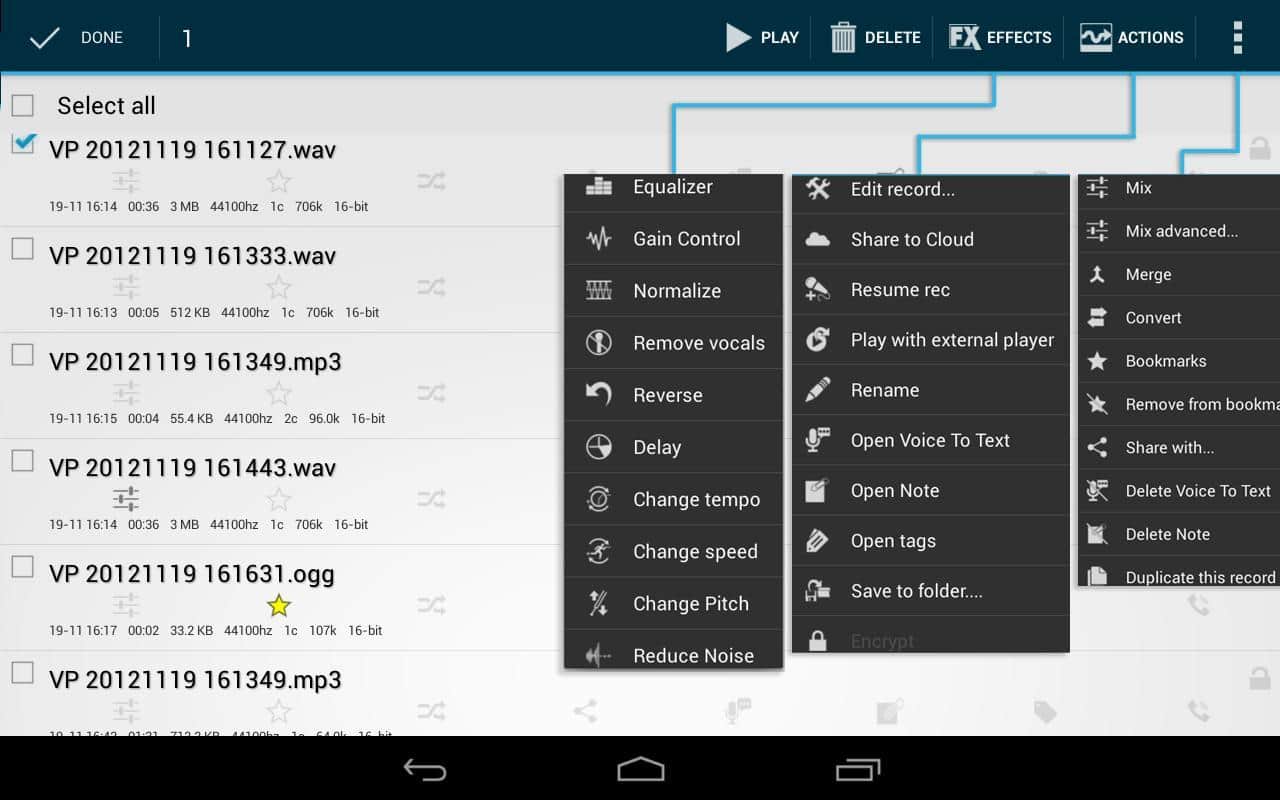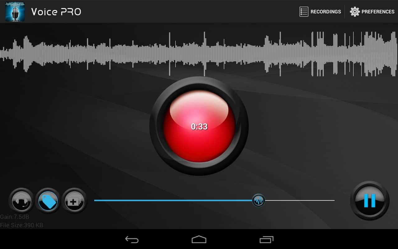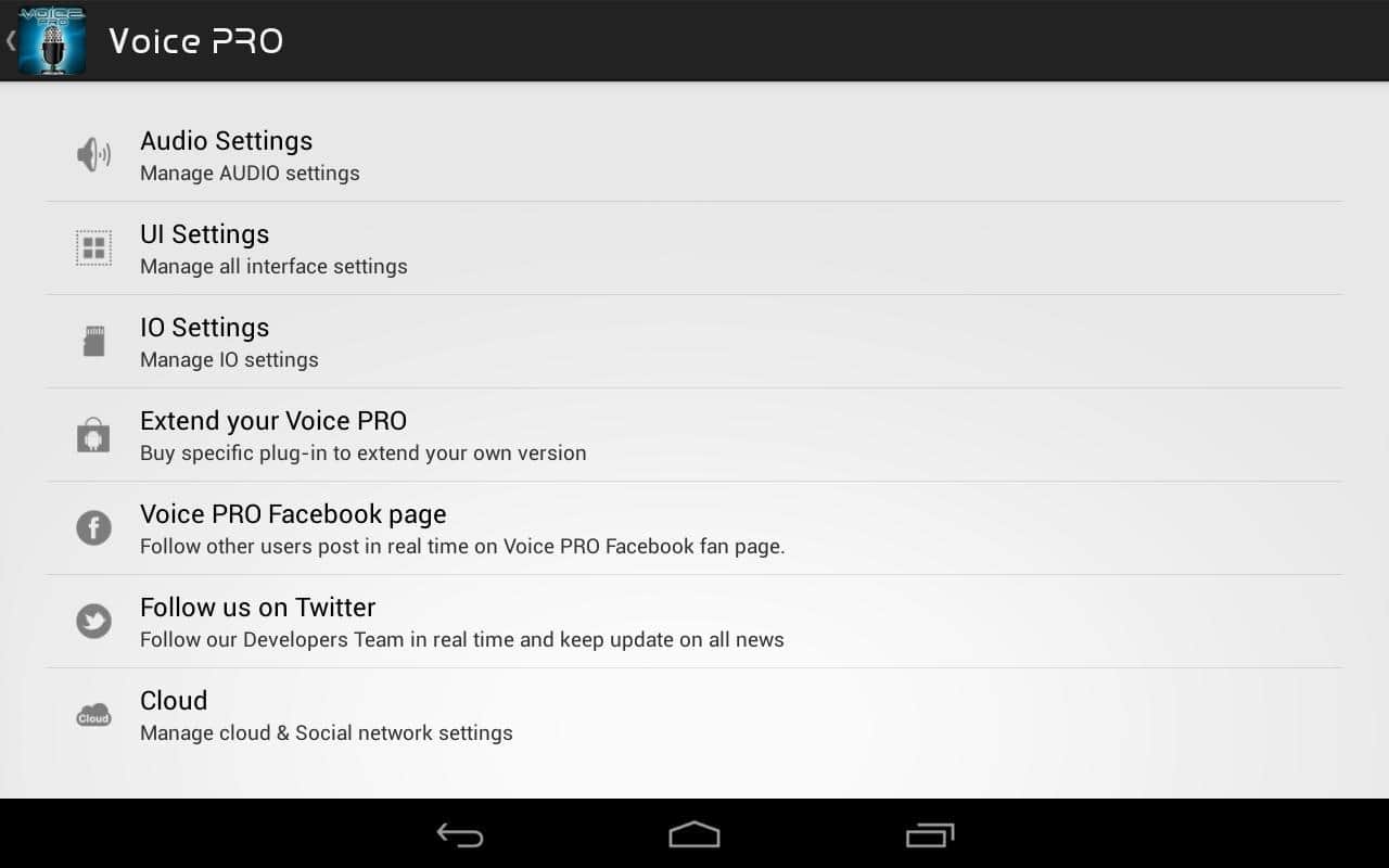Voice PRO para Android no es solo un grabador, al descargar este software verás todas sus características, un gran número de funciones y efectos para aplicar a tus grabaciones, en general, cualquier cosa (editar, ajustar, recortar, insertar un fondo diferente, eliminar interferencias y ruido, efectos de sonido, cambiar el volumen, cambiar el tempo, combinar o mezclar grabaciones de diferentes tamaños y calidad, convertir grabaciones de voz en texto en más de 50 idiomas y sin restricciones de tamaño!)