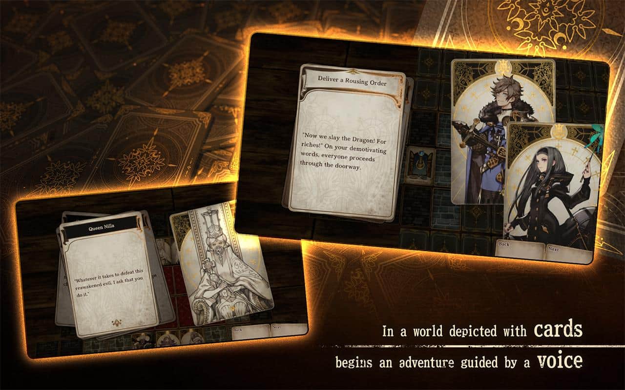 VoiceofCardsTheIsleDragonRoars - Sumérgete en un mundo completamente nuevo de aventuras de YOKO TARO, Keiichi Okabe y Kimihiko Fujisaka, talentosos desarrolladores de las series Nier y Drakengard. Hace mucho tiempo, cuando reinaban la paz y la tranquilidad, una oscura amenaza apareció en el horizonte, esparciendo terror y destrucción dondequiera que se presentara. El reino luchó desesperadamente, esperando ganar, pero como resultado de una dura batalla, el Dragón fue herido mortalmente y huyó a las entrañas de la tierra. Ahora el destino del mundo está en tus manos. ¿Podrás luchar contra esta terrible criatura y devolver la paz al reino de las Cartas? Esta única serie de juegos, artísticamente inspirada en juegos de rol de mesa y libros. Luchas paso a paso, y la clave para la victoria serán las gemas que te permitirán desbloquear nuevas habilidades y mejorar personajes en cada turno. Lanza los dados para infligir daño adicional o imponer estados alterados, estas son acciones que pueden decidir tu destino...
