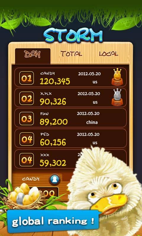 Wacky Duck - Storm es un juego para Android donde tienes que recoger pájaros por color para que desaparezcan. Lo mínimo que necesitas es recoger 3 pájaros del mismo color, si quieres más puntos, entonces puedes intentar aumentar el número de pájaros del mismo color en una fila. Un juego divertido para pasar el tiempo de manera entretenida.