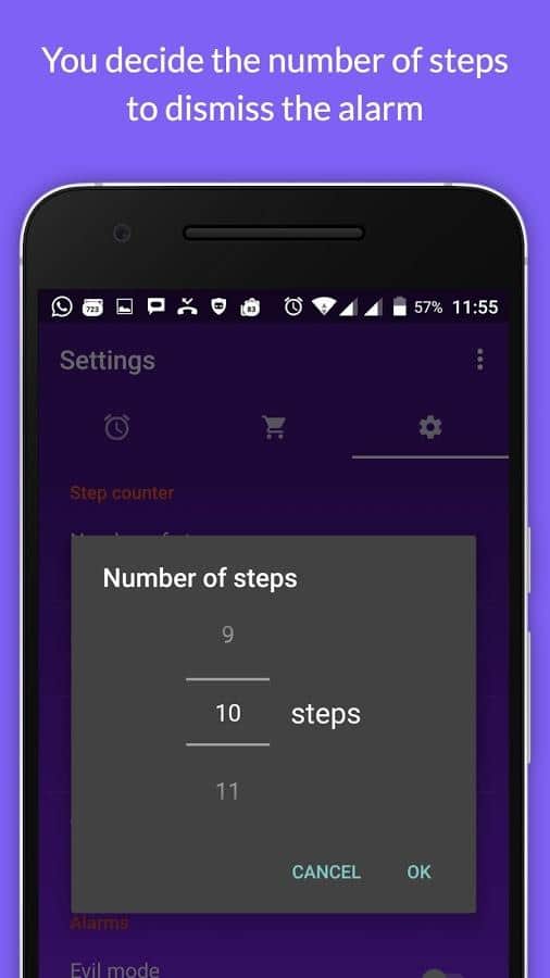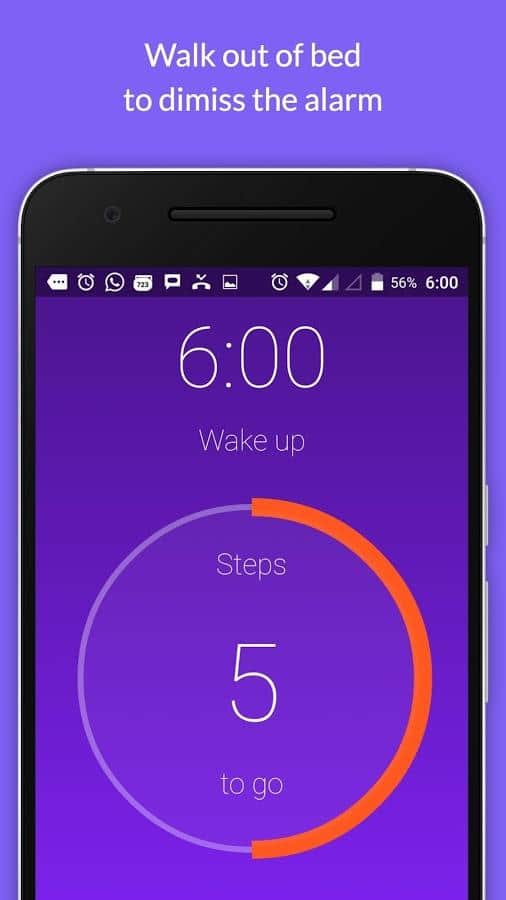 ¡Despiértame! Despertador – el hermoso despertador para aquellos que les gusta dormir profundamente, a pesar del sonido de alarma de su dispositivo. ¡Despiértame! detiene el sonido de la alarma solo cuando pasas un cierto número de pasos para su viaje, ¡así que finalmente tendrás que despertarte!