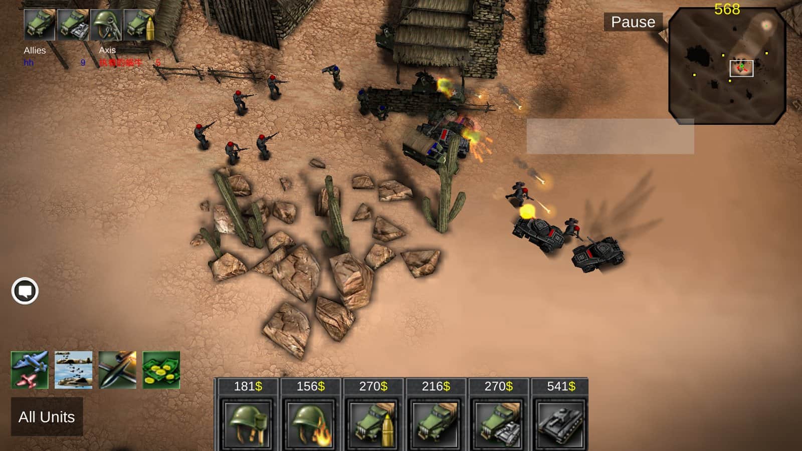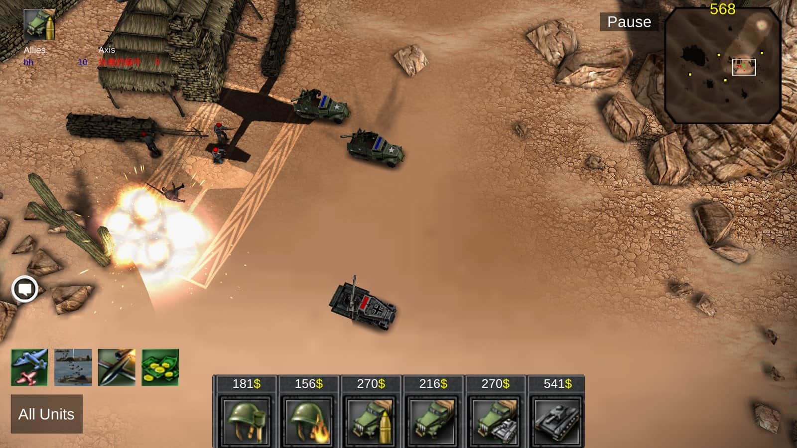 Guerra de la Gloria: Blitz es una interesante estrategia militar en tiempo real (RTS). El curso de los eventos que ocurren en los años de la gran guerra patriótica. Te esperan diferentes equipos. La posibilidad de comprar nuevos cuarteles y edificios, la mejora de tecnologías antiguas, la construcción de tanques modernos y otro equipo militar.
