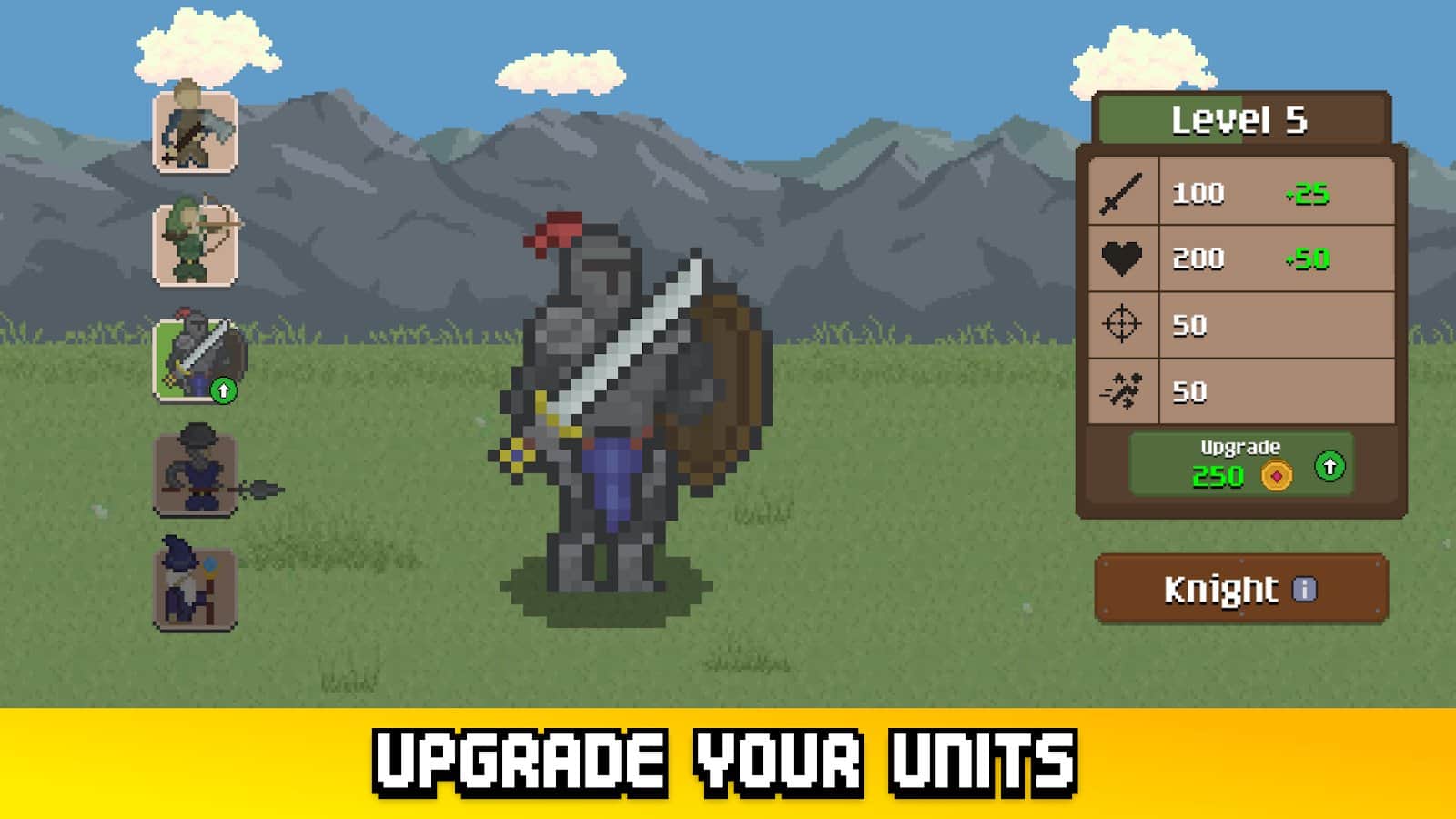 Warlords Conquest: Líneas enemigas es una experiencia única y emocionante de batallas militares en píxeles. ¡Prepárate para colocar soldados en varias líneas y confrontar estratégicamente a las tropas enemigas en batallas épicas! Mejora tu ejército y crea una poderosa legión que no deja atrás a ningún enemigo mientras exploras diferentes mapas y derrotas ciudades enemigas. Tus valientes guerreros confían en tu genio táctico para guiarlos a la victoria.