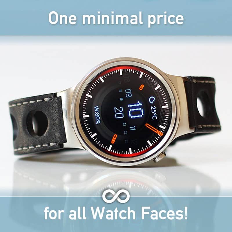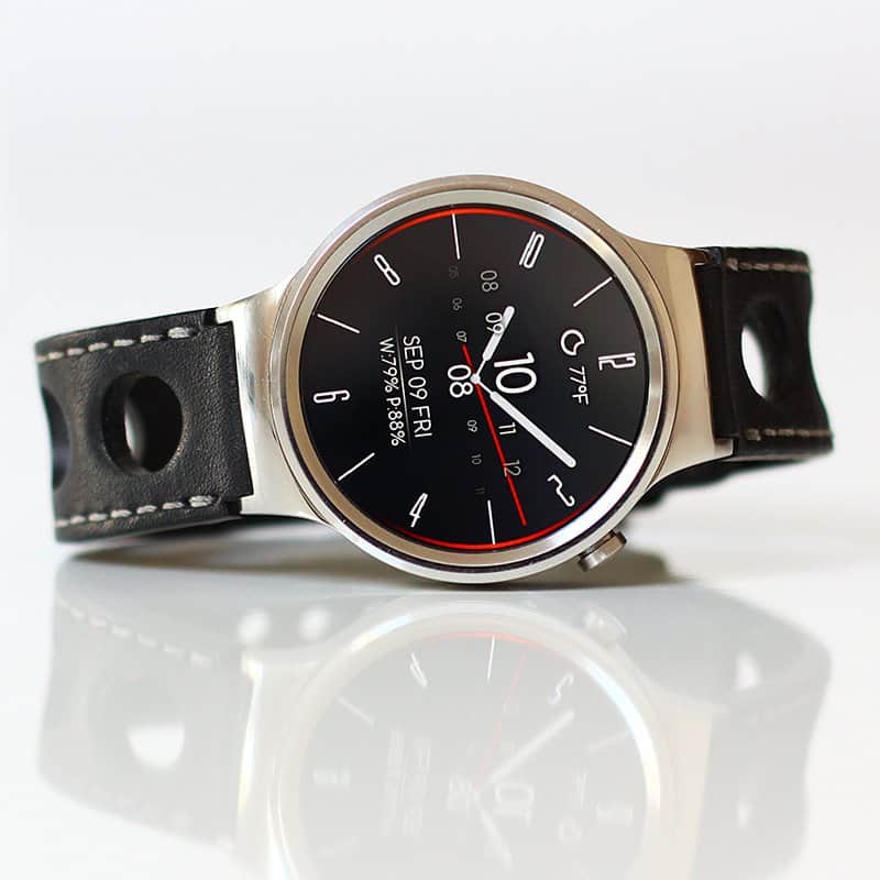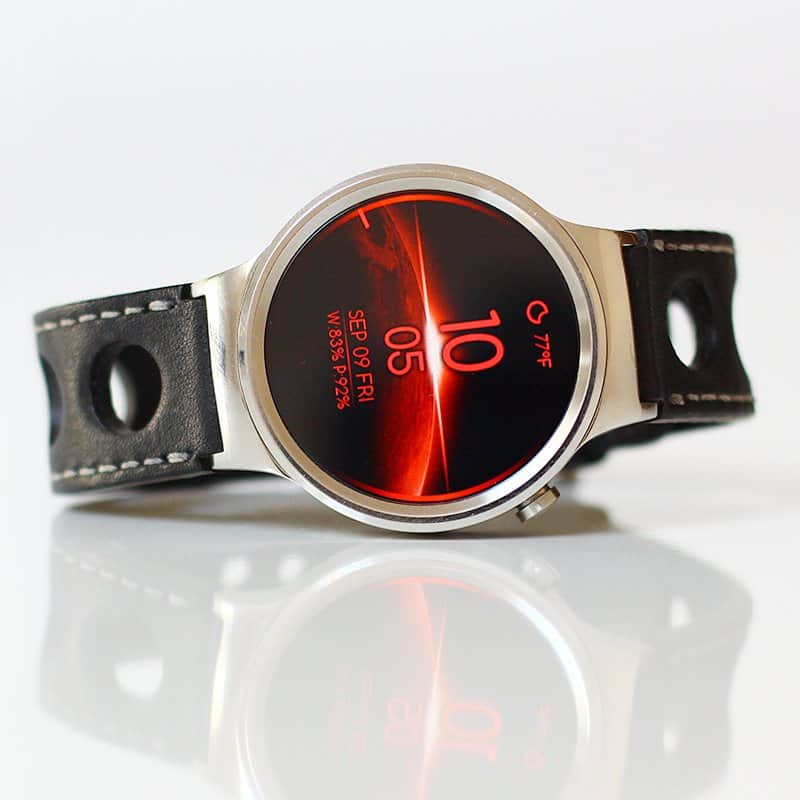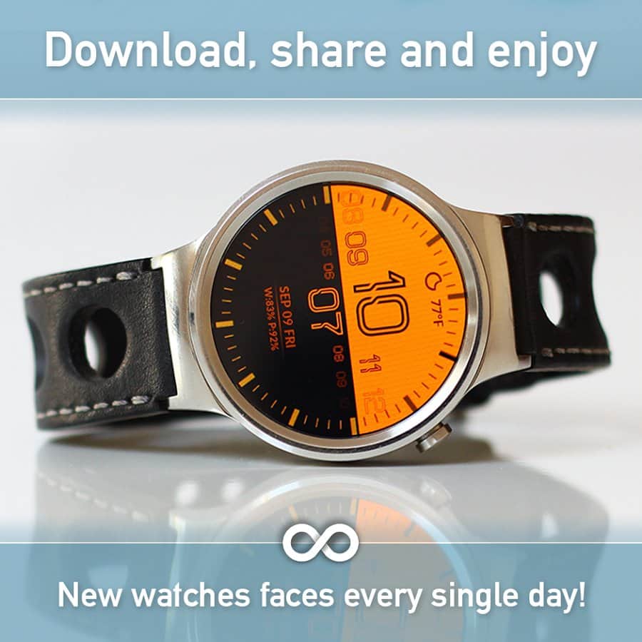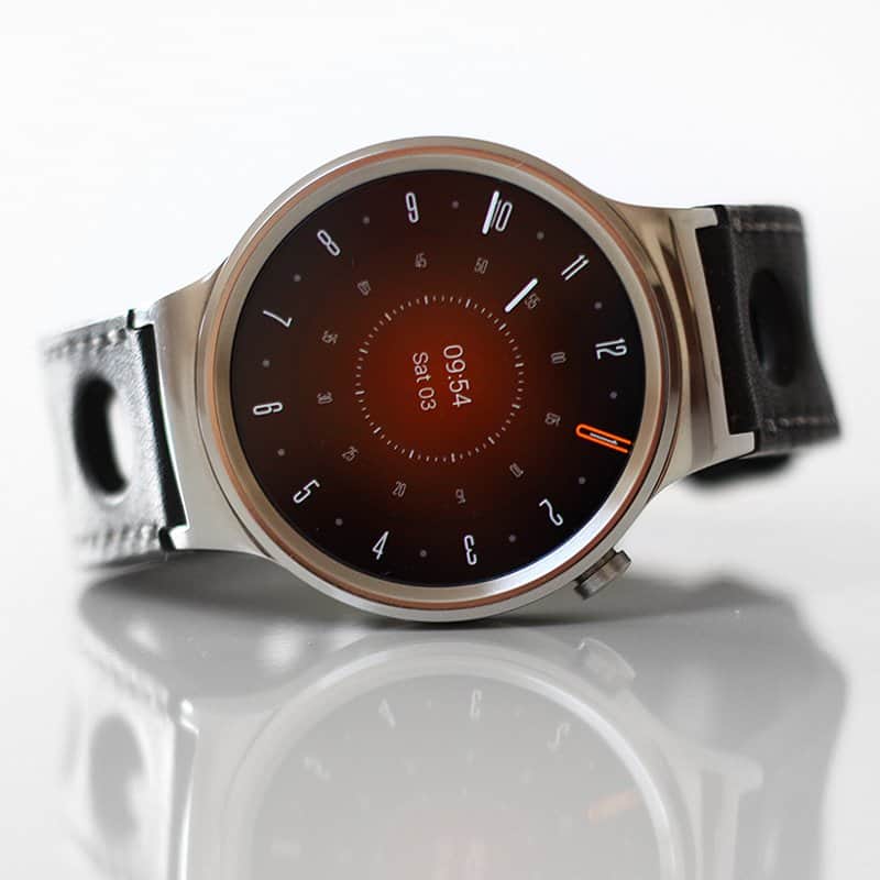 Delante de ti está la cara de reloj más linda para Android Wear con una ubicación no estándar y horizontal de la línea de tiempo, sin embargo, no es menos clara.