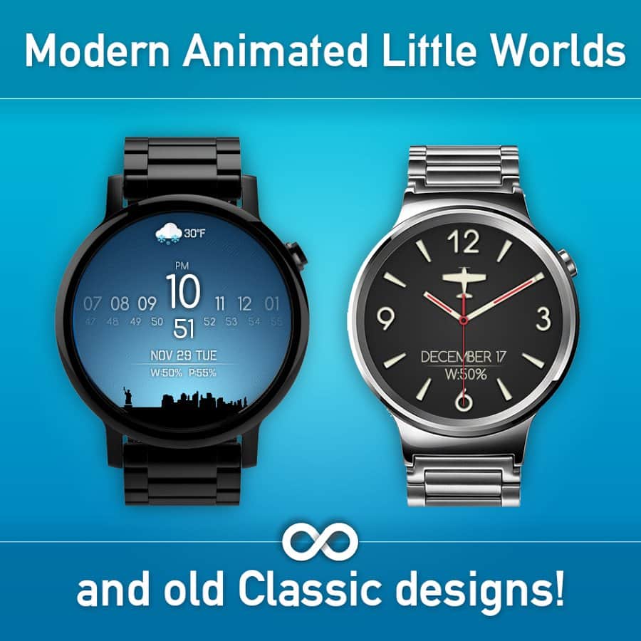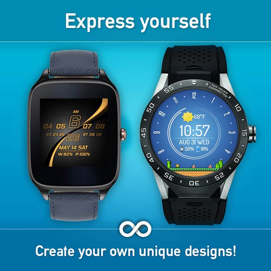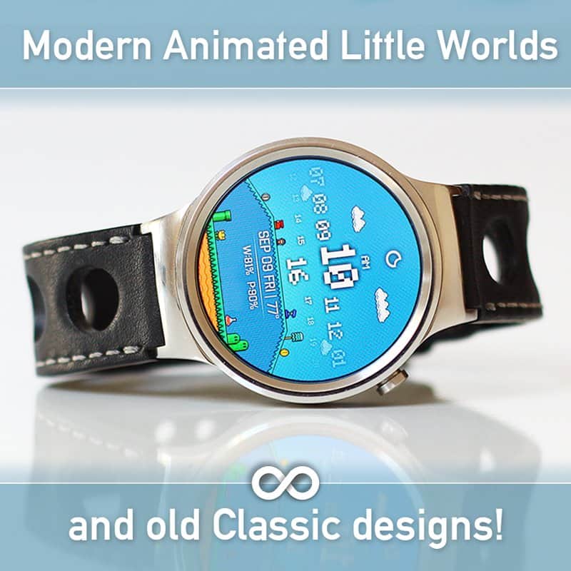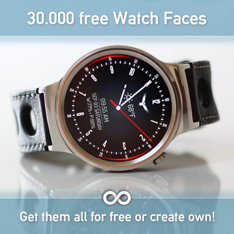 Delante de ti está la cara de reloj más linda para Android Wear con una ubicación no estándar y horizontal de la línea de tiempo, sin embargo, no es menos clara.