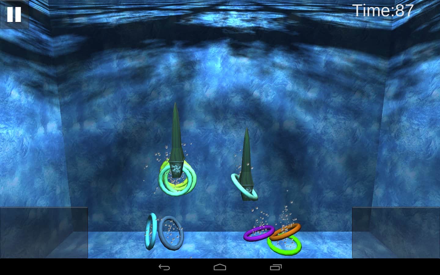 Donuts de Agua - la versión electrónica del famoso juego ahora en tus teléfonos inteligentes Android! Todos probablemente recuerden un divertido juego en el que al presionar los botones, tenías que lanzar anillos sobre los clavos. Ahora puedes llevar este juego contigo. El juego tiene física realista del movimiento de los anillos en el agua. Y para los fanáticos de superar las puntuaciones más altas, en el juego hay una clasificación de jugadores.
