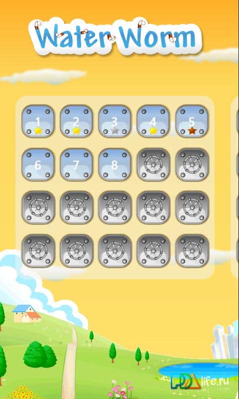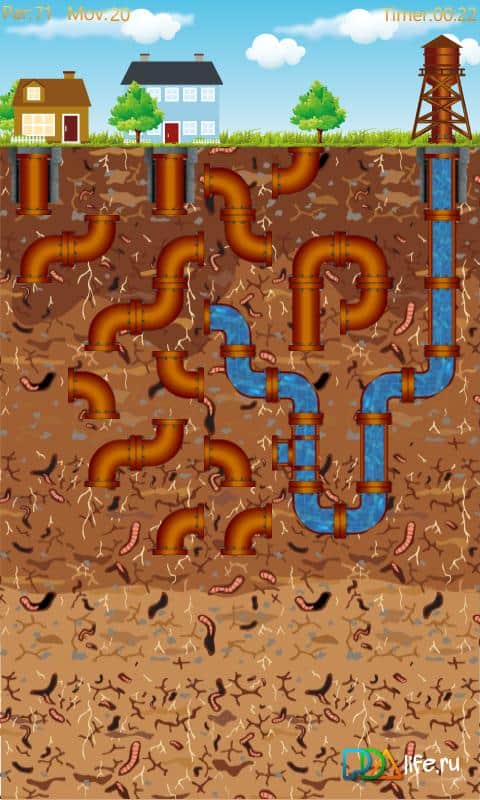 Gusano de Agua - un juego simple pero bastante divertido y emocionante para Windows Phone 7. Es una versión clásica del famoso juego "trumpet". En este caso, tenemos un pequeño pueblo en el que es necesario establecer el suministro de agua de cada casa.