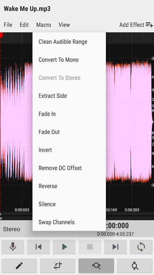 WaveEditor para Android Grabador de Audio y Editor es una aplicación muy simple con muchas opciones para editar grabaciones de audio. Es una herramienta profesional con la que podrás procesar y convertir el audio. Sonido claro y mejora la calidad, añade filtros o transfiérelo de un formato a otro, fácil de mezclar las grabaciones con la música y trabajar con cambios de múltiples pistas. Entenderás rápidamente con una interfaz simple y todas las funciones disponibles.