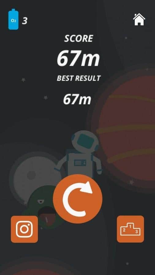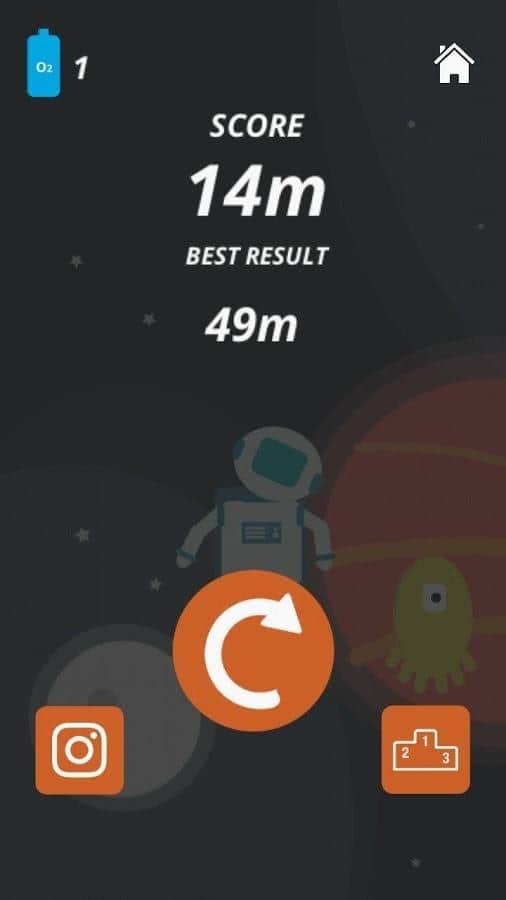 El Camino a Casa es un juego de aventura para Android donde ayudarás al astronauta a regresar a casa. Nuestro astronauta está atrapado en el espacio exterior y quiere volver a la tierra, y para hacer esto necesitas presionar tan a menudo como sea posible en la pantalla de tu teléfono o tablet y reducir la distancia a la casa. Además, no dejes que nuestro héroe se enfrente a monstruos peligrosos y terribles. Presiona tan a menudo como sea posible en la pantalla y acerca a tu astronauta a casa. Juega este juego en cualquier momento libre y gana suficientes puntos.