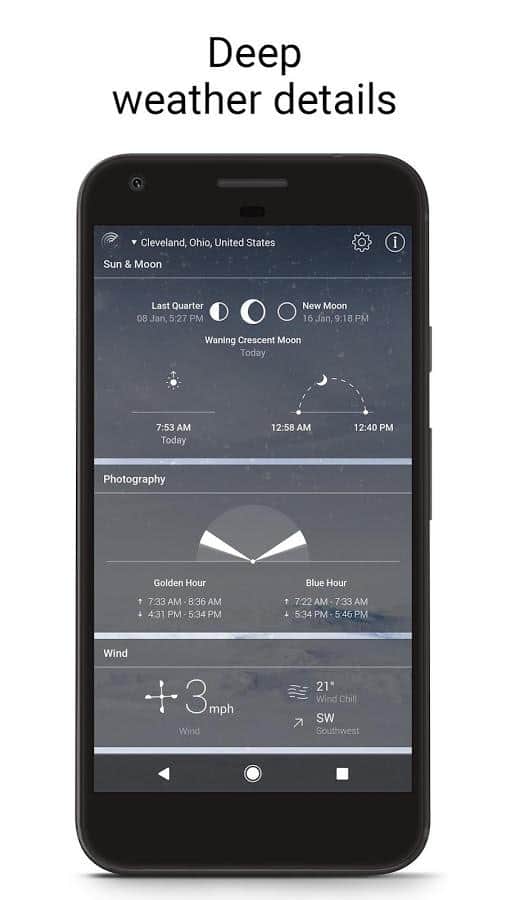 - Las secciones con información sobre el viento y la humedad te ayudarán a planificar mejor tu viaje;