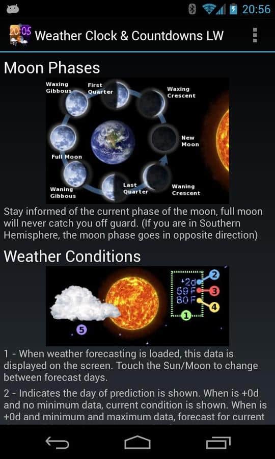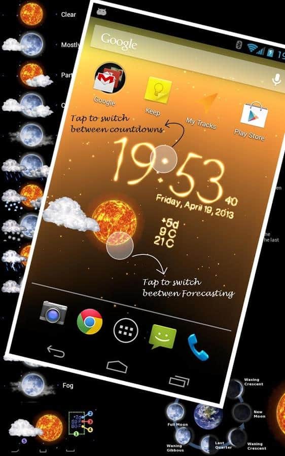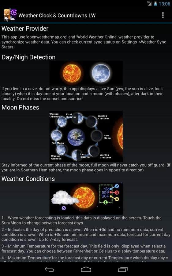 Fondo de pantalla en vivo del clima – perfecto fondo de pantalla en vivo para dispositivos Android del desarrollador de aqreadd Studios, principalmente widget animado de condiciones meteorológicas con un montón de diferentes posibilidades como: cuenta regresiva para fechas de vacaciones (evento importante / negocio a su discreción); observación de las fases de la luna, amanecer y atardecer; el pronóstico del tiempo para 4 días con las condiciones actuales y así sucesivamente.