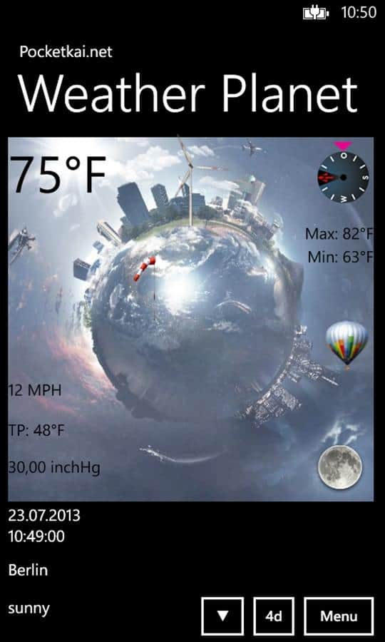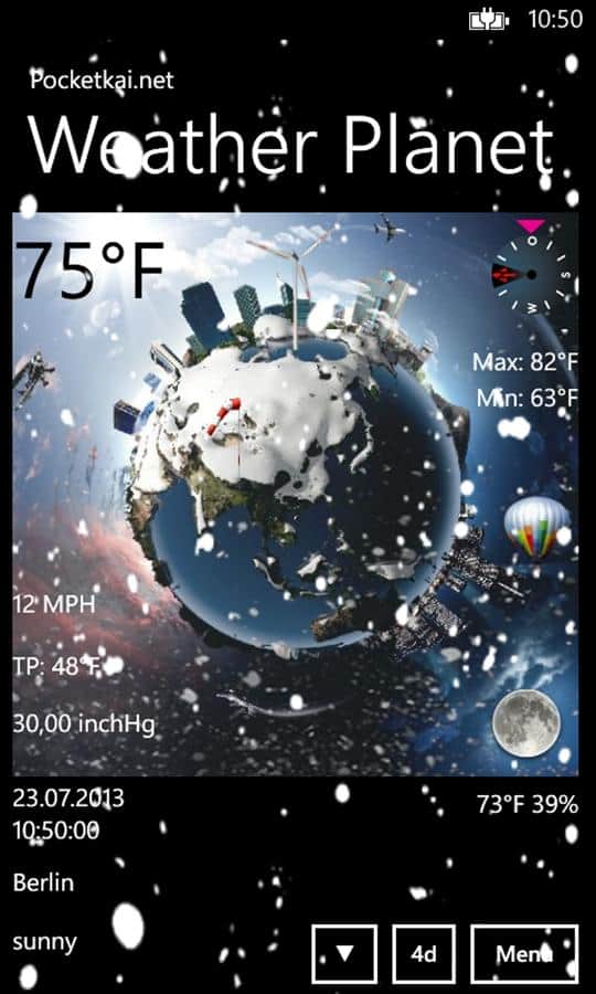 Weather Planet - usa tu teléfono como una verdadera estación meteorológica. Que muestra la temperatura, la humedad, la velocidad del viento, la dirección del viento y el barómetro son mayores que los valores donde es poco probable que te encuentres. Gracias a un diseño así, observar el clima ahora se ha vuelto mucho más interesante y emocionante.