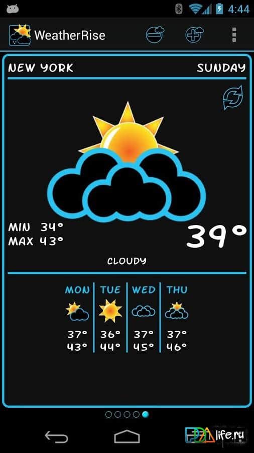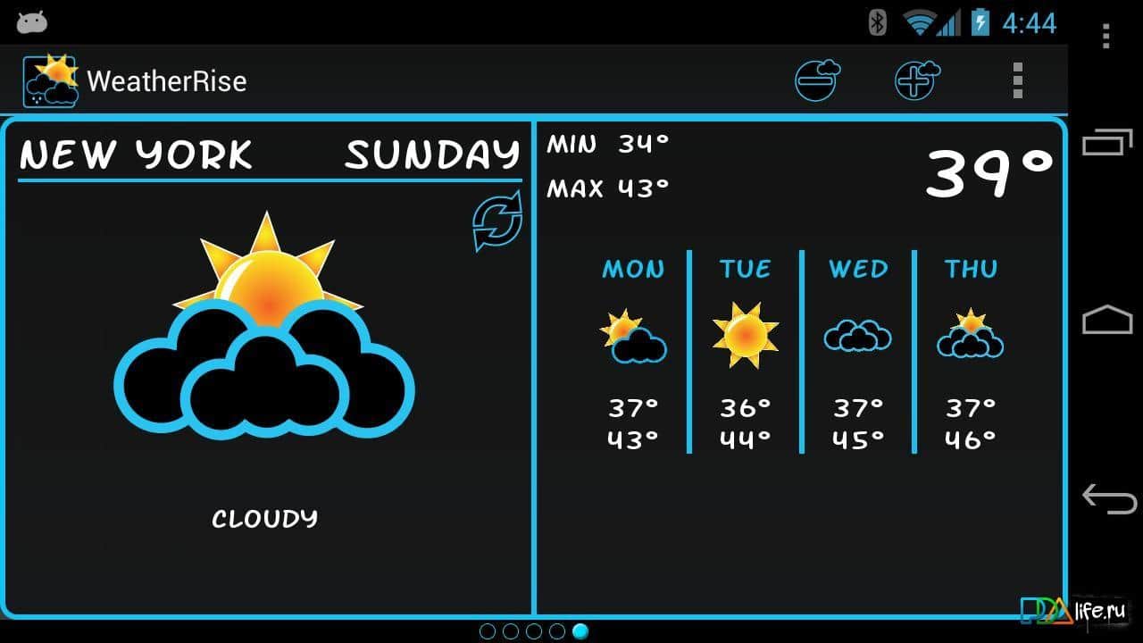 Weather Rise – maravillosos widgets de clima para teléfonos inteligentes/tabletas Android durante 4 días. Weather Rise añadirá automáticamente tu ubicación actual y mostrará el día y el clima actual. Estar al tanto de los planes del cielo para el día.