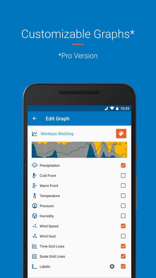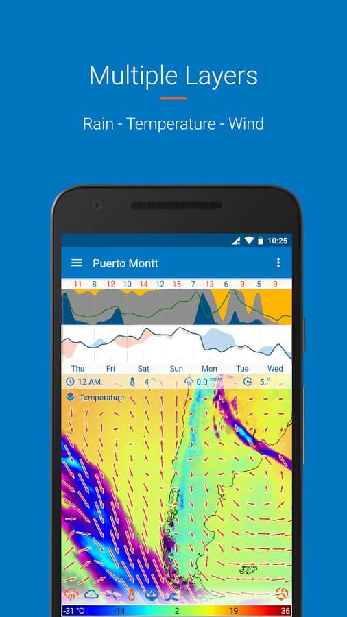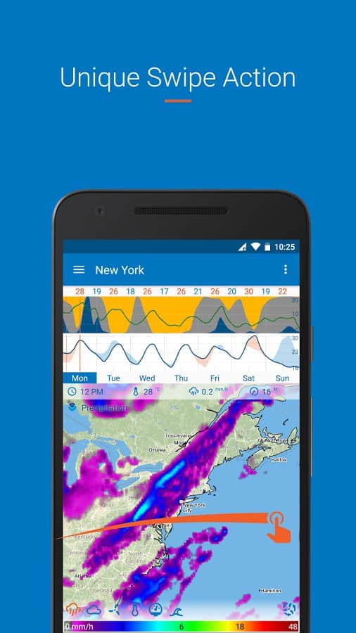 WeatherBomb es una aplicación universal que te mostrará el pronóstico del tiempo en tiempo real. No es tan simple como parece, hay un mapa interactivo que te muestra el pronóstico del tiempo en tiempo real. Hay un menú por el cual el usuario puede seleccionar la información que necesita. Hay un elemento tan único como la altura de las olas, estos datos pueden ser interesantes para los pescadores.