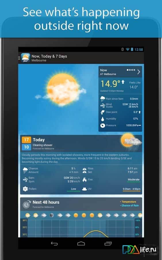 Weatherzone Plus es una aplicación creada no para aquellos que les gusta ver el clima para mañana, sino para aquellos que realmente tienen la intención de rastrear los cambios en el clima durante un corto período de tiempo. En ella encontrarás todas las funciones que necesitas para comparar el rendimiento del clima para el futuro cercano, ver la zona de ciclones, averiguar en qué dirección sopla el viento y calcular el clima por ti mismo. Ya no necesitas confiar en lo que dice el servicio meteorológico, observa por ti mismo cómo cambia el clima.