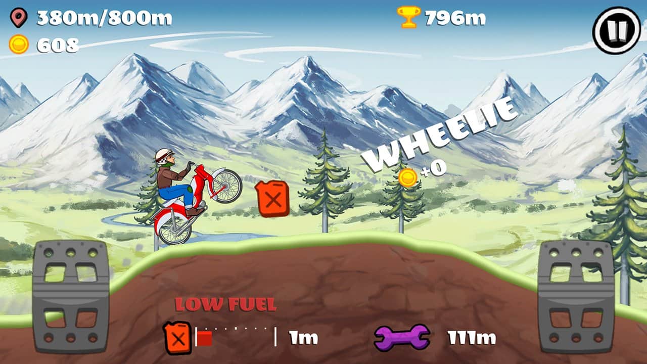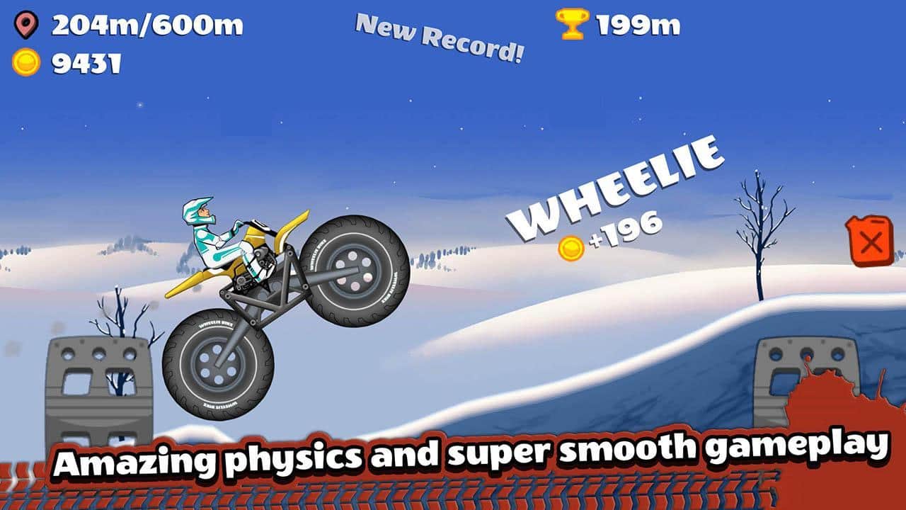 Wheelie Racing – toma el control de tu motocicleta y conduce en diferentes pistas del juego. Delante de ti viajarás a diferentes países donde conducirás por la carretera, las colinas, la pendiente helada y los desiertos. Tu tarea principal en este juego es conducir en todas las pistas, superando obstáculos y saltando en trampolines. Haz acrobacias vertiginosas y conduce sobre una rueda de la motocicleta, ganando más puntos y obteniendo recompensas. Descubre nuevas motocicletas, que tendrán características únicas y una apariencia especial.