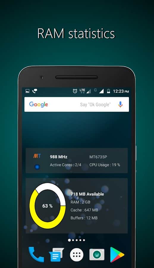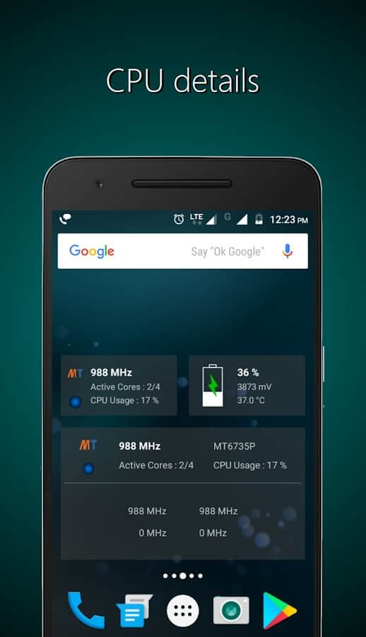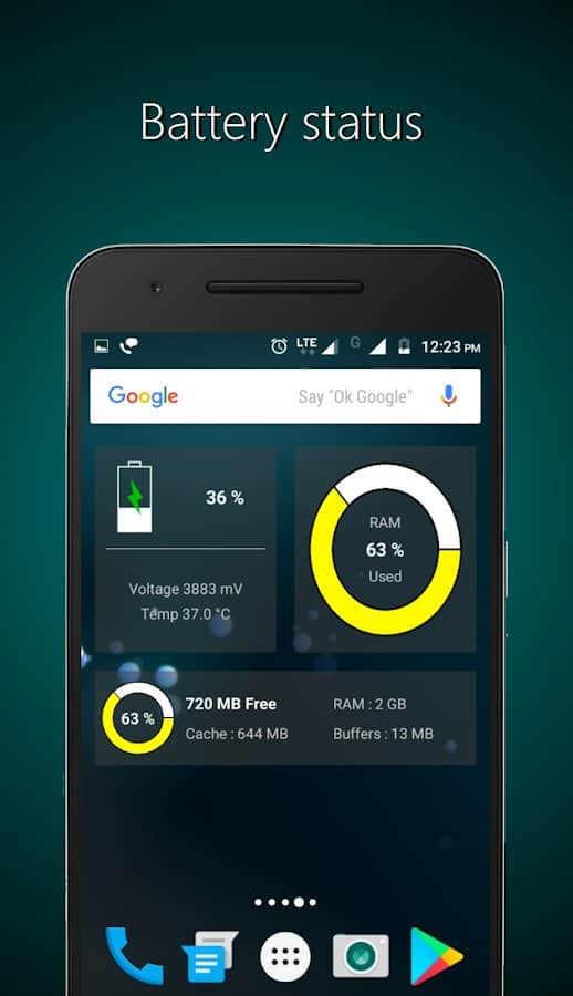 Con los widgets Widgets - CPU | RAM | Batería podrás en cualquier momento aprender todo sobre el estado de la batería, cargar la tarjeta de memoria y la memoria interna, análisis del procesador.