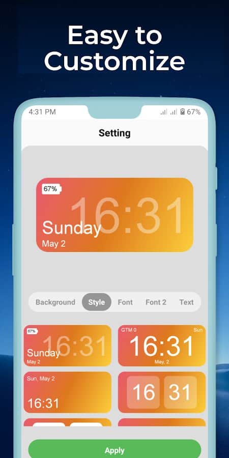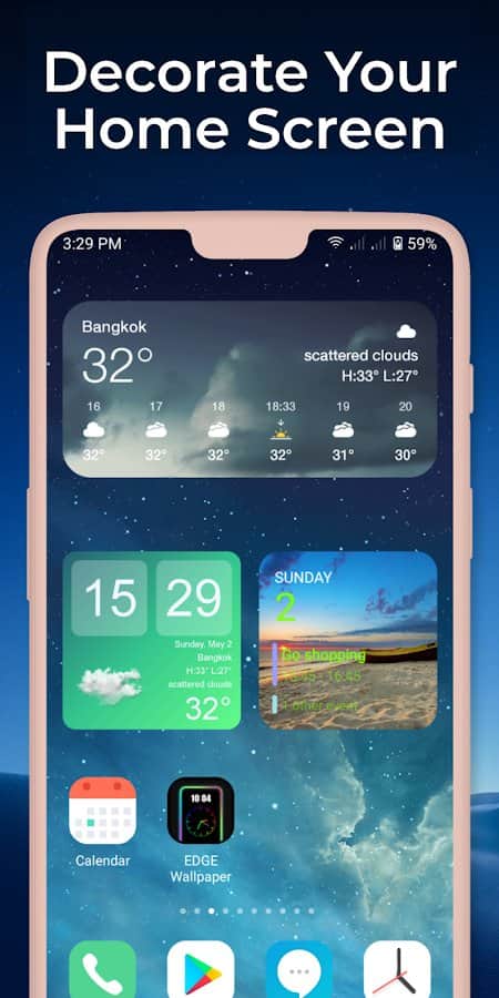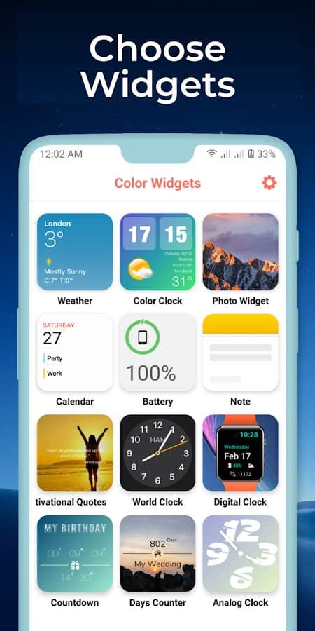 Widgets de iOS 15 - Widgets de Color - ¡Cambia completamente la pantalla de tu teléfono utilizando todos los widgets diseñados para iOS 15! Personaliza cada widget para ti mismo, entre ellos están: calendario, reloj digital, clima, notas, álbum de fotos, reloj de color, hora mundial, citas inspiradoras, contador de calorías y podómetro, carga de batería. Cualquiera de las funciones anteriores tiene un diseño individual que puede cambiarse fácilmente en la configuración. Coloca todo en tu pantalla para que nada te interfiera mientras pasas tiempo en el teléfono.