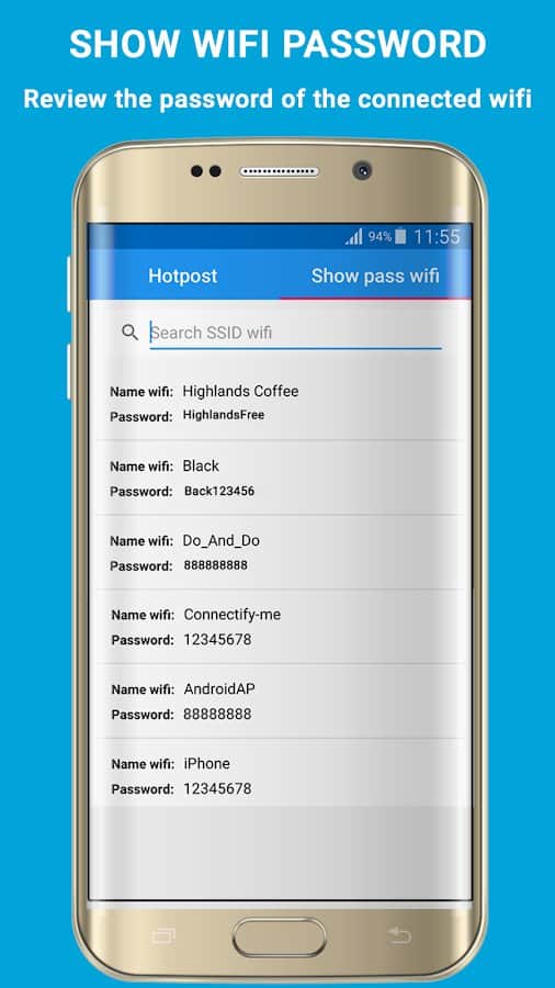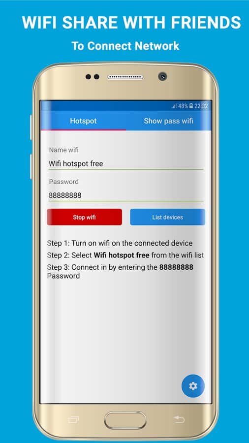 El punto de acceso Wi-Fi gratis, en primer lugar, será útil para aquellas personas que llevan un estilo de vida activo y viajan mucho. La aplicación recuerda y te permite ver todas las contraseñas de WiFi guardadas anteriormente, es capaz de crear un punto de acceso móvil, muestra una lista de los dispositivos conectados a tu red WiFi y requiere prácticamente ningún recurso para trabajar. A través de la aplicación, podrás asegurar su punto de acceso, configurando una contraseña, o ver una contraseña olvidada que se ingresó anteriormente.