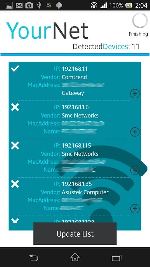 Búsqueda rápida y muestra una lista de dispositivos conectados a redes WiFi o 3G (consolas, televisores, computadoras, tabletas, teléfonos, etc.)