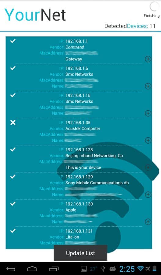 Inspector de Wifi para Android. Una gran aplicación para aquellos que se preocupan por quién más está en su tráfico de Internet y lo roba en silencio. La aplicación te permite descubrir todos los dispositivos conectados a tu red en menos de un minuto.