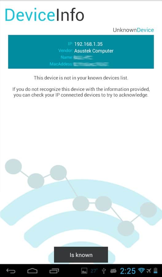 Mostrar información disponible sobre el dispositivo conectado: dirección IP, fabricante del dispositivo, nombre del dispositivo, dirección MAC.