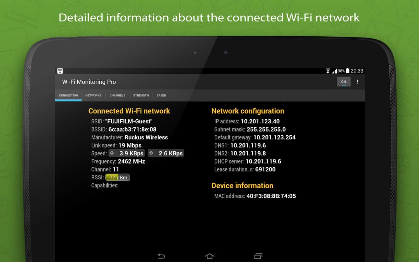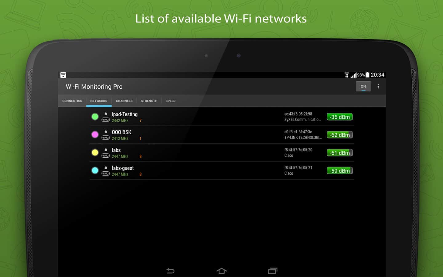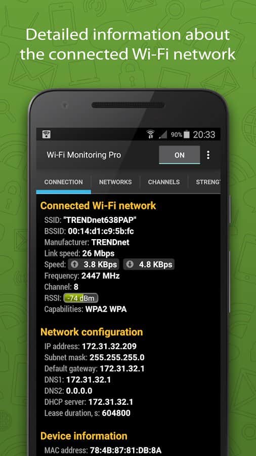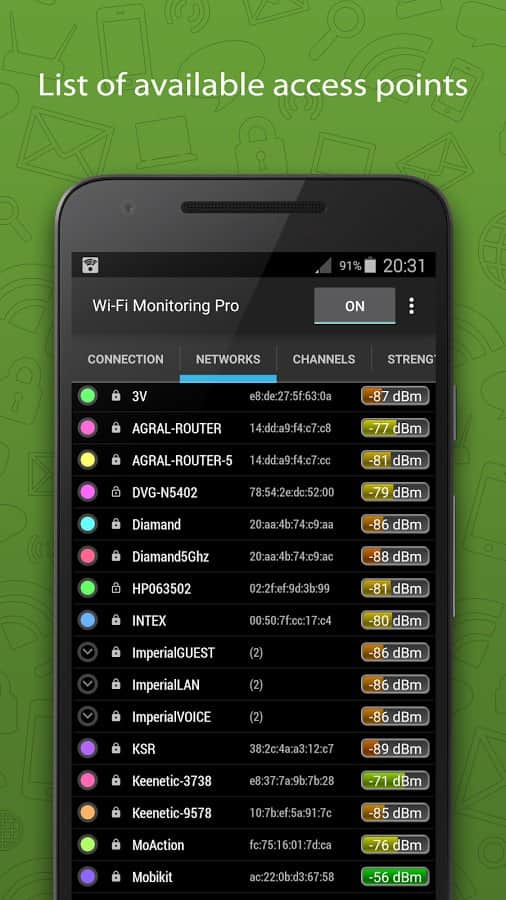 Wi-Fi Monitor Pro - ¿Quieres estar en línea siempre y en todas partes, pero no quieres usar tu Internet móvil? La solución es simple, instala esta aplicación y busca puntos de conexión disponibles, de esta manera podrás encontrar Internet gratuito, conectarte a él y volver a la red. La aplicación es bastante versátil y puede mostrarte no solo la señal de cada conexión, sino también su calidad, velocidad y varios otros parámetros.