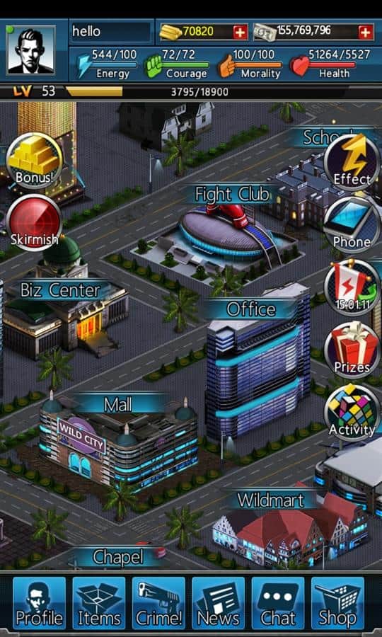 Wild City – un juego multijugador en línea que abrirá un enorme mundo de mafia y crimen. En este juego crearás tu vida y decidirás quién quieres ser: el líder de la mafia urbana, un gánster, un revendedor o un ciudadano común. Reúne a tus amigos y construye un enorme imperio criminal que controlará toda la ciudad. Conviértete en el más importante de la ciudad y resuelve todos los problemas por la fuerza y las armas. También tendrás la oportunidad de construir tu imperio financiero comprando y vendiendo antigüedades, equipos y armas. Apunta a la gloria y la influencia, y también aumenta tu masa muscular y armadura para defenderte de tus enemigos, que buscarán destruirte y ocupar tu lugar.