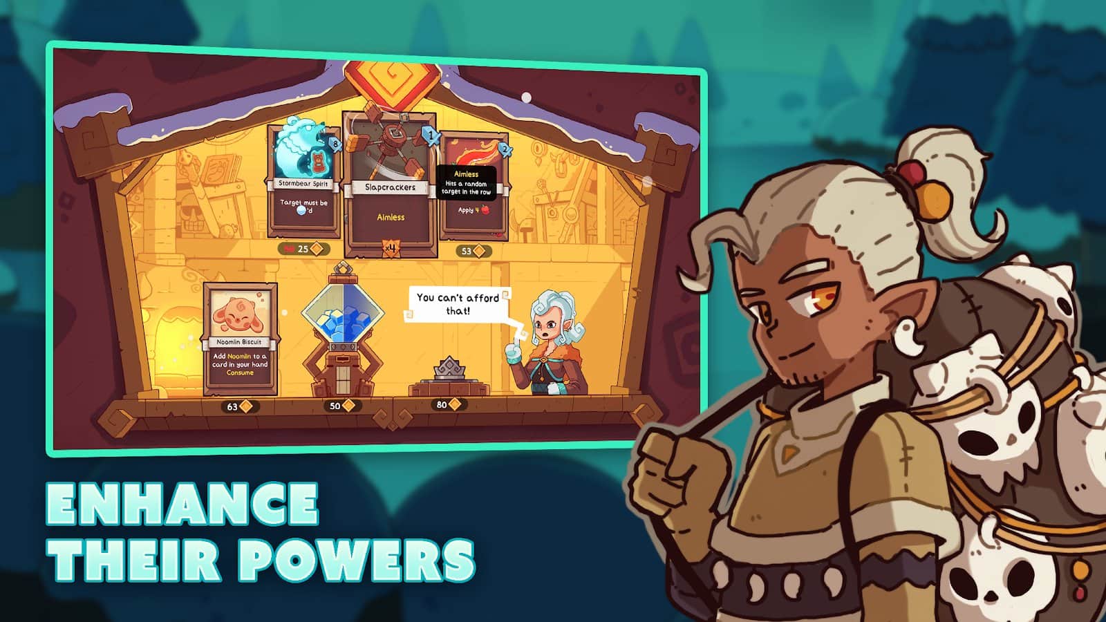 Wildfrost - En un mundo donde el sol se ha congelado bajo el dominio del Hielo Salvaje, solo la ciudad de Snodwell sobrevive. Tus tareas son reunir un poderoso mazo de cartas de compañeros y elementos y desafiar el invierno eterno. ¡Crea tu mazo único de más de 160 cartas! El juego se actualiza constantemente y ofrece el contenido más reciente, incluyendo "Mejores Aventuras" y "Campanas de Tormenta".