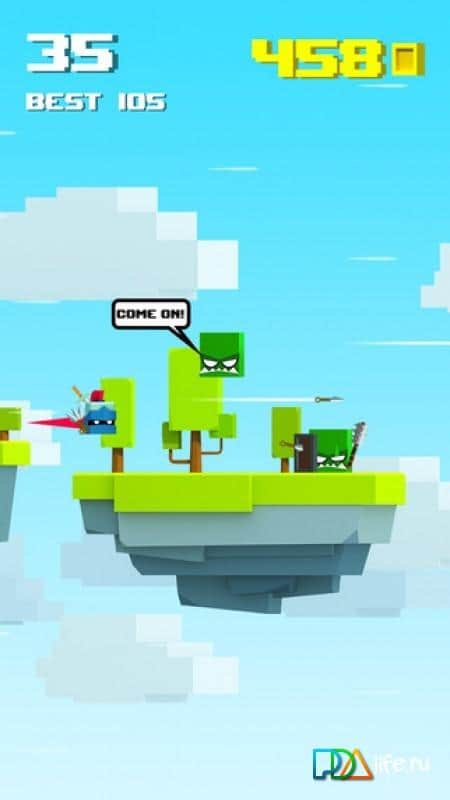 Will Hero - Aventura en píxeles donde jugarás el papel principal, ¡el héroe! Un baboso malvado capturó a la encantadora Princesa, ahora es el momento de ayudarla. Este juego es muy simple, pero definitivamente te mantendrá ocupado durante horas, su atractivo son las animaciones divertidas y la posibilidad de no solo empujar a los enemigos por un acantilado, sino también lanzar hachas, cuchillos e incluso bombas, desgarrándolos y salpicando tu pantalla con sangre. Por cierto, al principio del juego se puede desactivar la sangre, si tienes menos de 12 años. A medida que avances en el juego, podrás ganar oro y desbloquear nuevos personajes. ¡Y cuidado con las trampas en tu camino! Adelante para salvar a la Princesa.