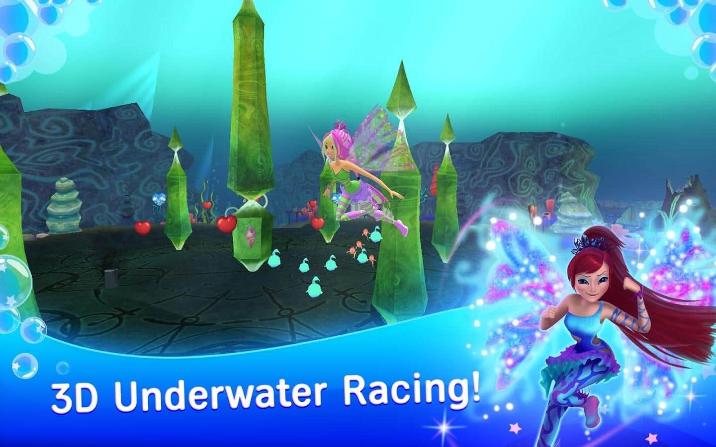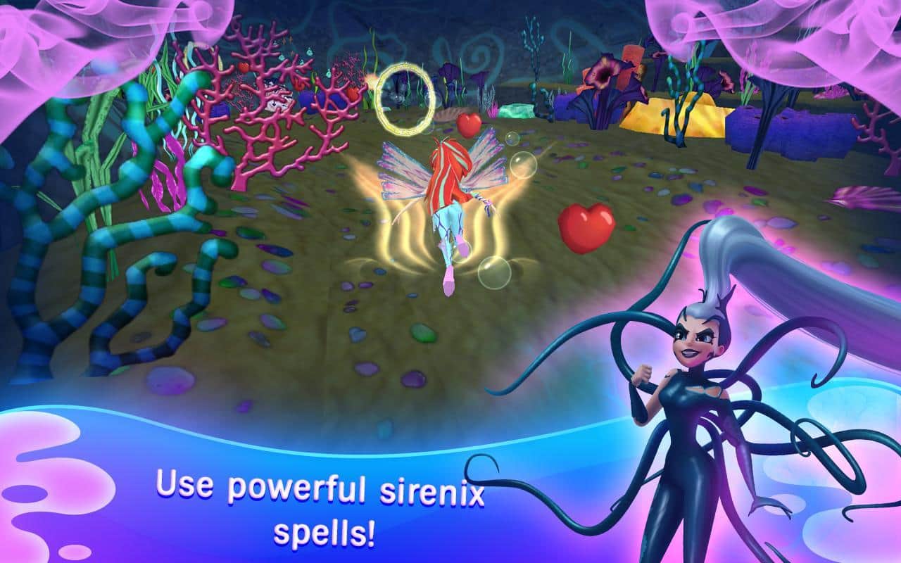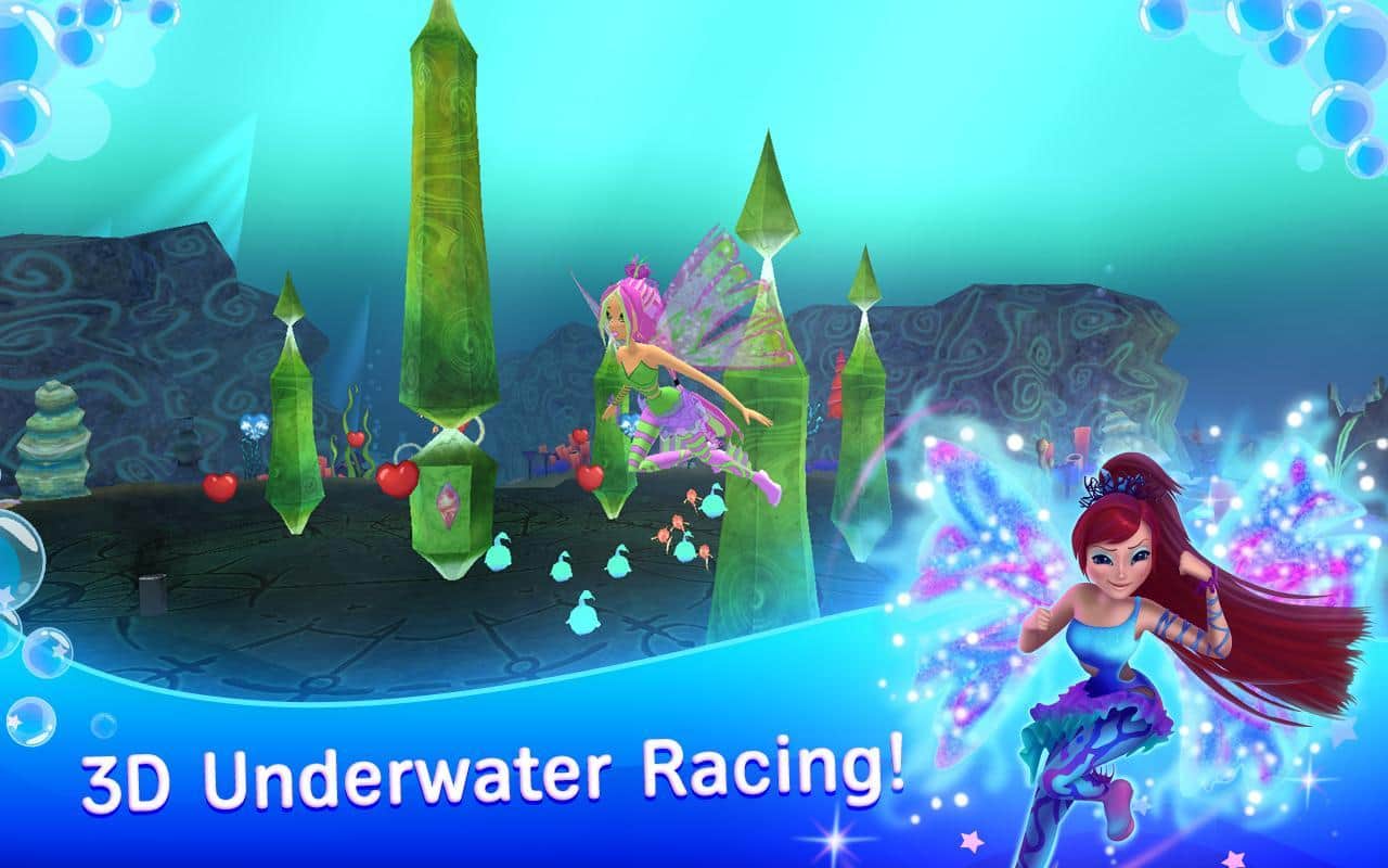 Winx Sirenix Power - sumérgete en las profundidades del océano con un divertido arcade para Android. Podrás jugar como las hadas Bloom o Stella. Por supuesto, el juego fue creado basado en la serie "Winx Club". El juego tiene 5 etapas - desde el entrenamiento hasta la recuperación. A lo largo de tus aventuras te encontrarás tanto con buenos deseos como con enemigos. ¡Pero tu objetivo principal es lograr salvar a las selkies antes que Tritannus, mientras que insidiosamente contamina el océano! En cada nivel tienes que llegar a las 3 estrellas y recoger todos los bonos en forma de gemas. ¡Y recoger corazones rojos y azules limpios de barriles de petróleo, competir en una carrera en la montaña "Ojo de Tiburón" y más! Echa un vistazo aquí, hay más juegos para chicas